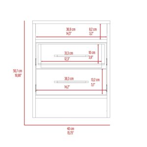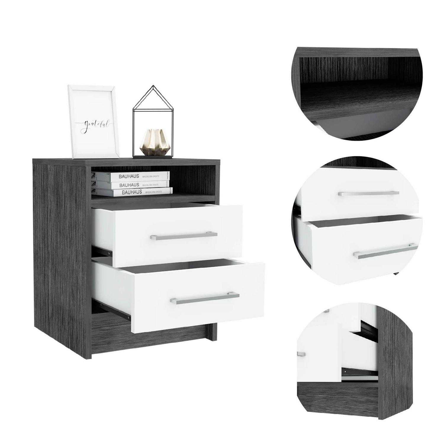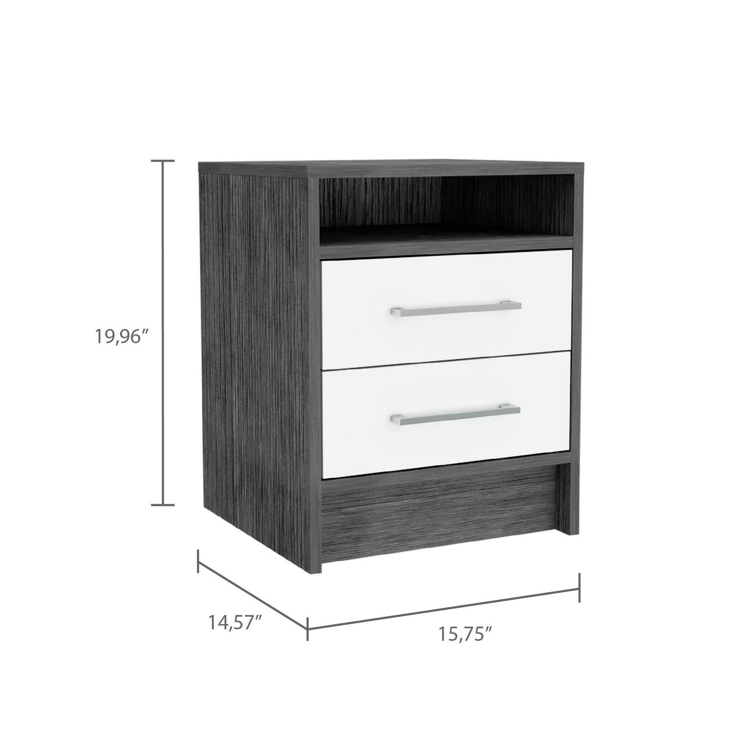 Take your Bedroom to the next level with Boahaus! Meet the Malaga White and Gray Painted Nightstand. You will love the look of this sleek and modern nightstand in your bedroom or living room. It has a fresh, contemporary design that will complement any décor. Designed with a unique touch, the Boahaus Malaga Nightstand comes with two drawers ( 14,2”W X 5,1”H) for extra storage and safety with an open compartment for books or your mobile devices. Its size (15,7”W X 14,7”D X 19,9”) fits perfect in any room. Made of Engineered Wood. Assembly is Required.
