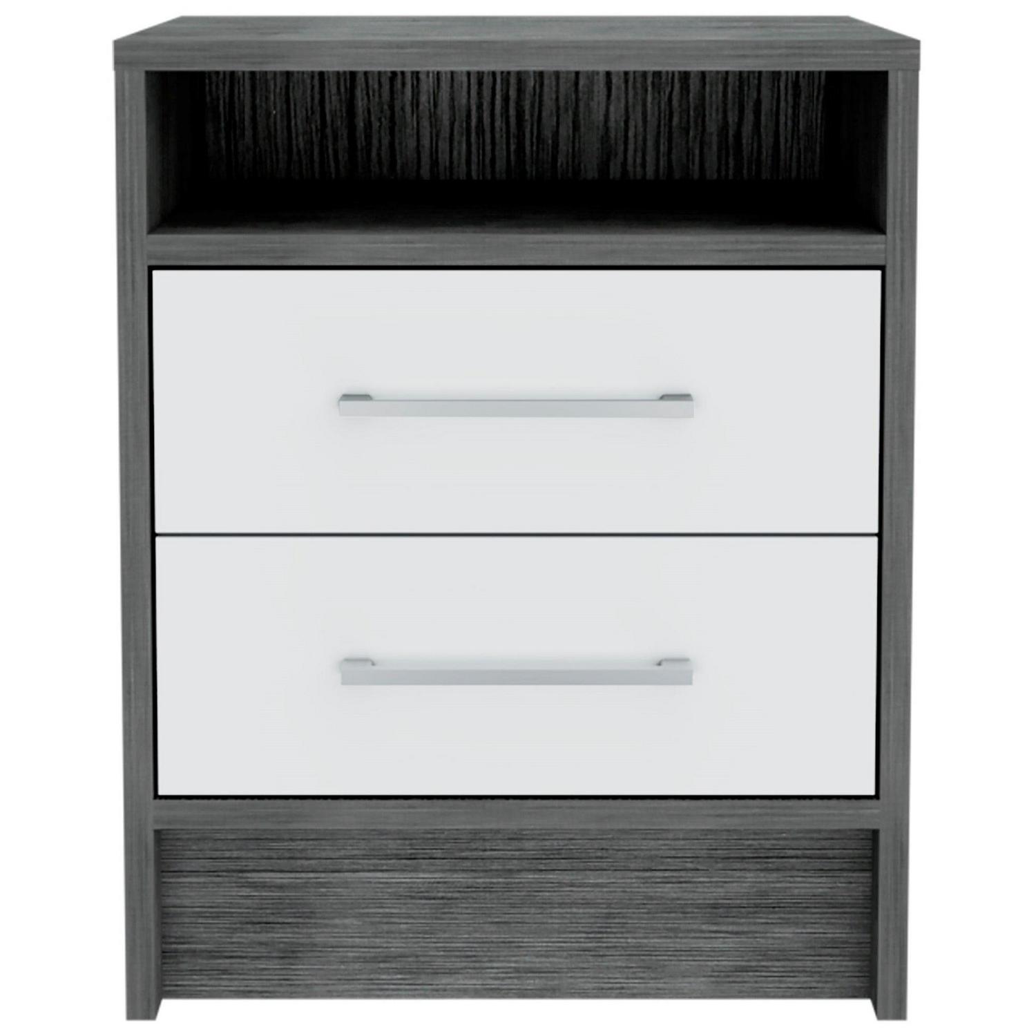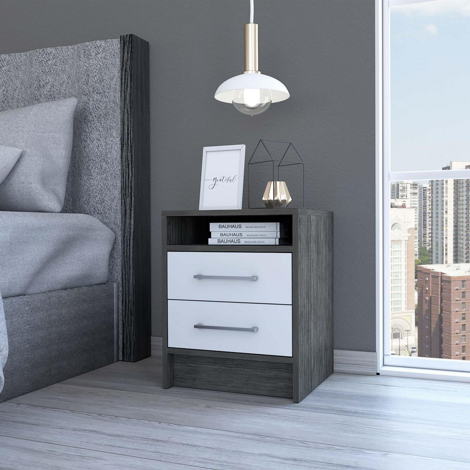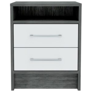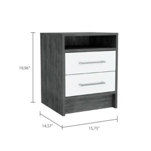 Boahaus Malaga Modern Nightstand, White-Gray Painted, 2-Drawers, for Bedroom