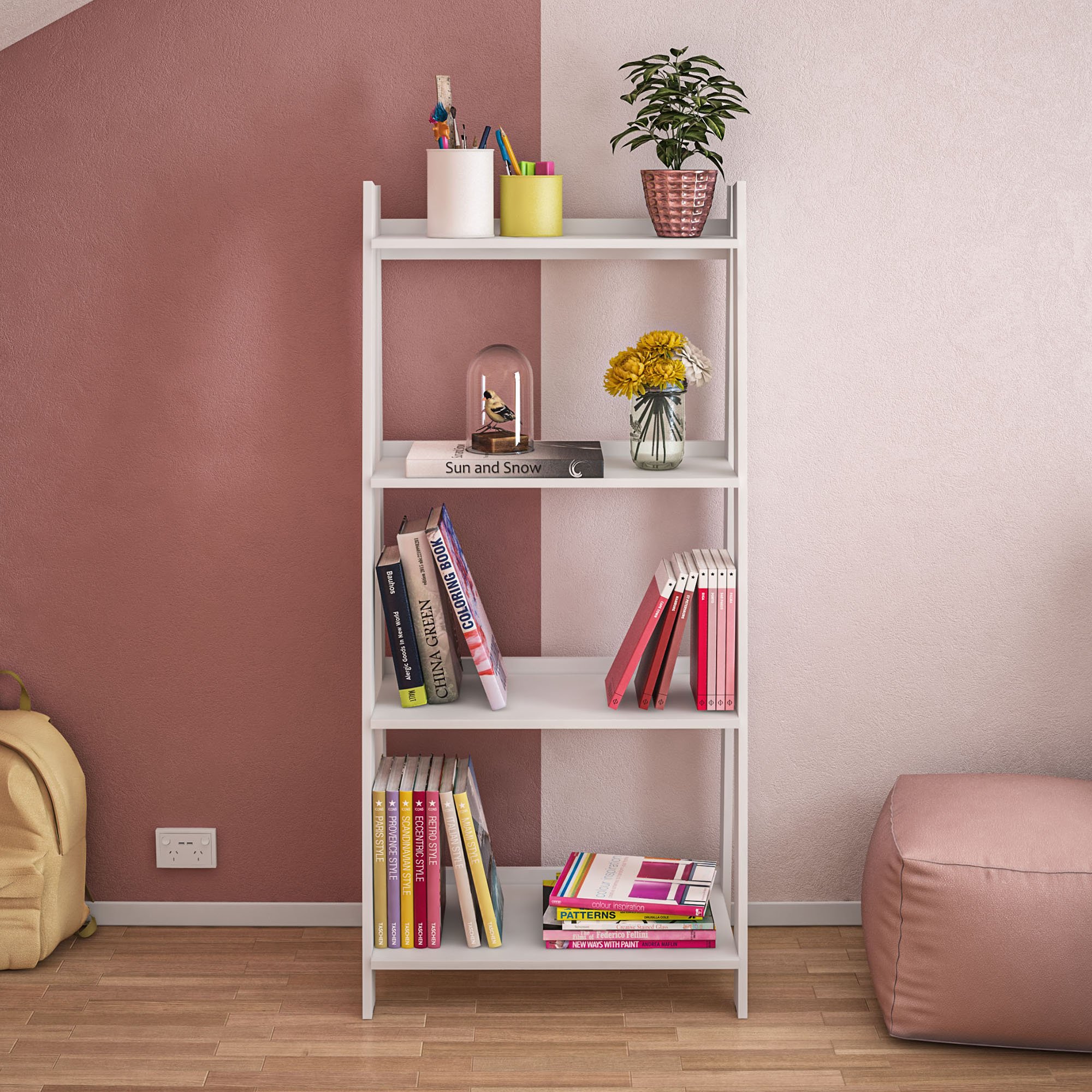 Boahaus Orebro Ladder Bookcase, White Finish, Four Shelves