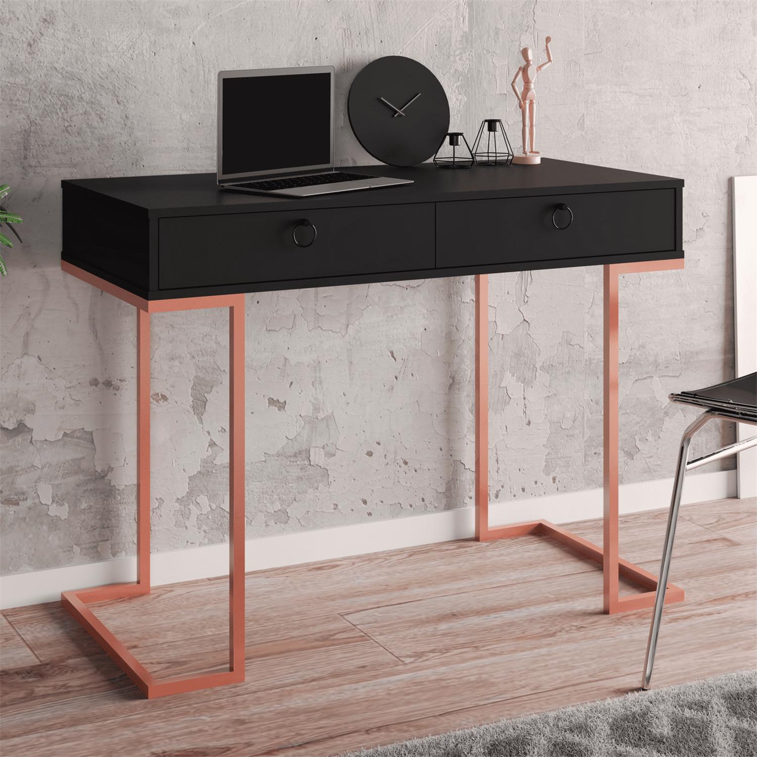 Boahaus Surabaya Desk, Black, 2 Drawers, Metal Frame, for Adults