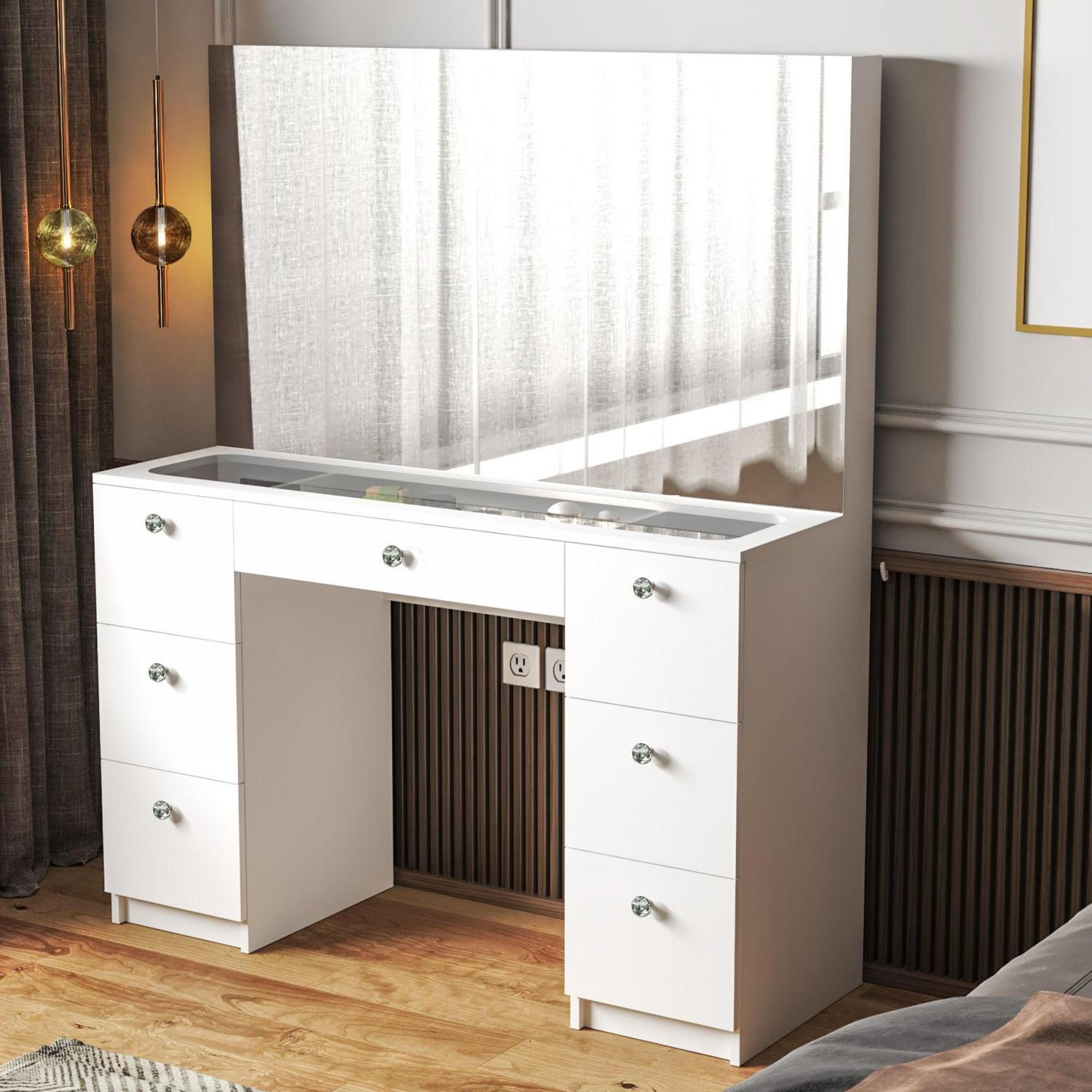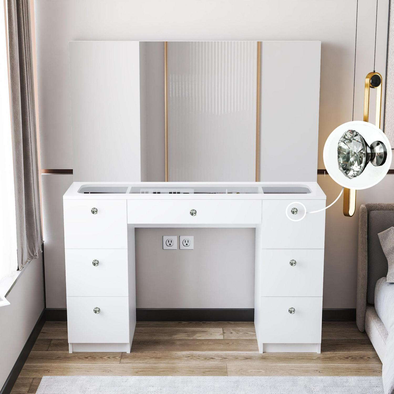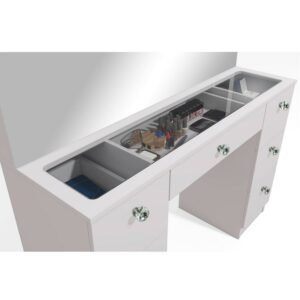 – Knobs: This makeup vanity desk also features customized knobs, adding a touch of elegance and luxury to the design, making it the perfect addition to any modern bedroom. The customized design allows for a unique and personalized look.