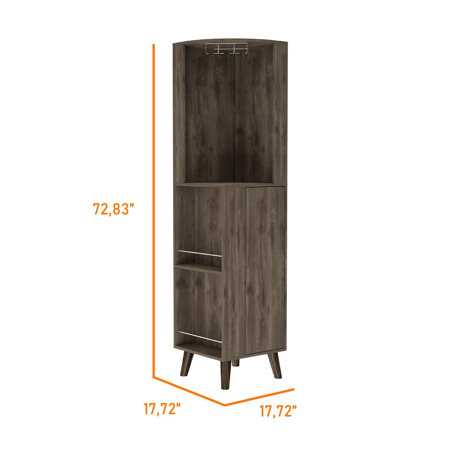Add some character to your corner with Boahaus Wakefield Corner Bar. This bar is designed to fit in any tight spot, and its large capacity means you can store all of your supplies with an ample countertop shelf (17.72”W x 17.72”D), one ample drawer with two shelves, includes a cup rack for your glasses! Made with a dark brown manufactured wood in a sleek design and witty name, Wakefield will make your corner the life of the party. Total ergonomic dimensions (17,72”W X 17,72”D X 72,83”H).