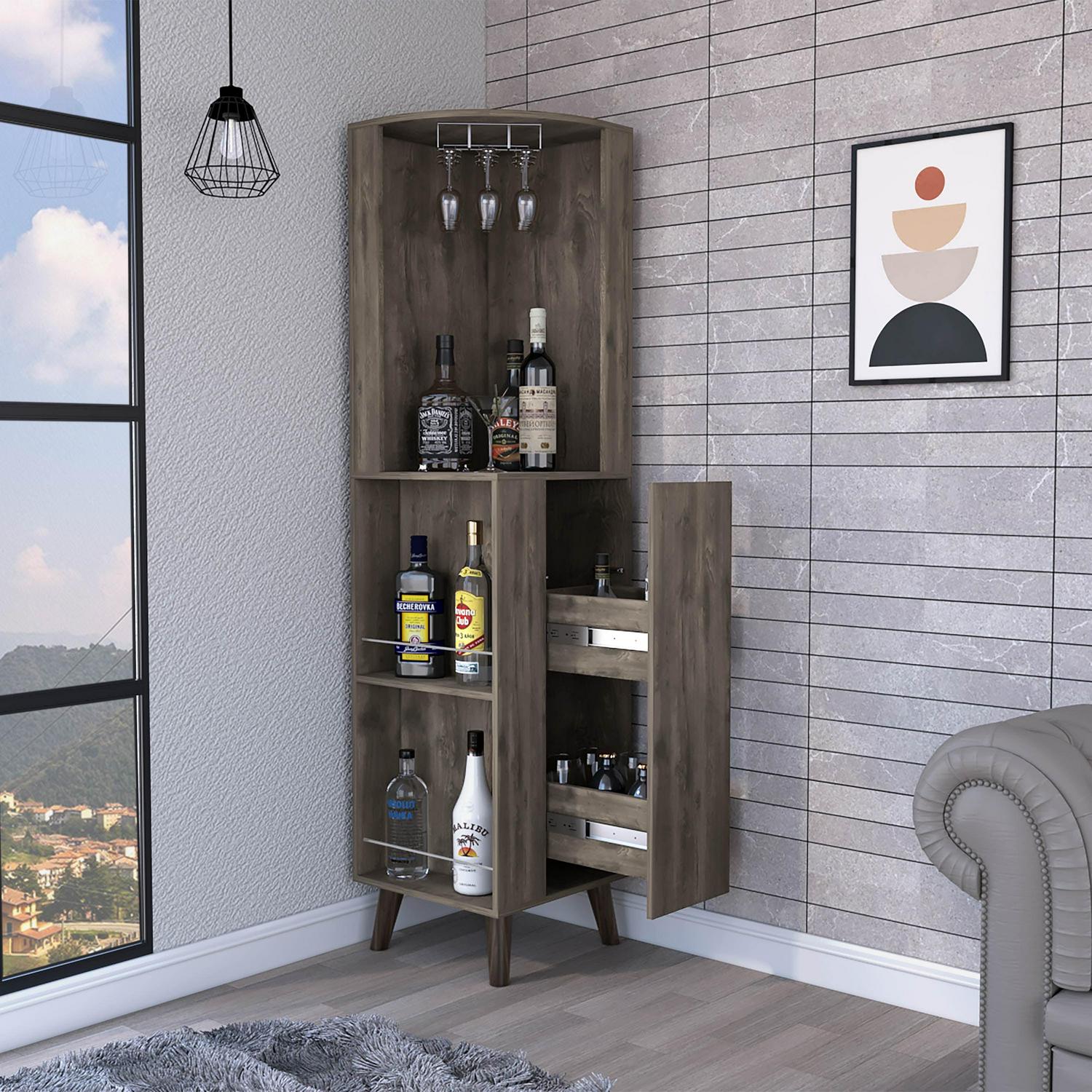 – Drawer and Shelves for Organized Storage: The Wakefield Corner Bar includes one ample drawer and two shelves, offering organized storage for your bar supplies.