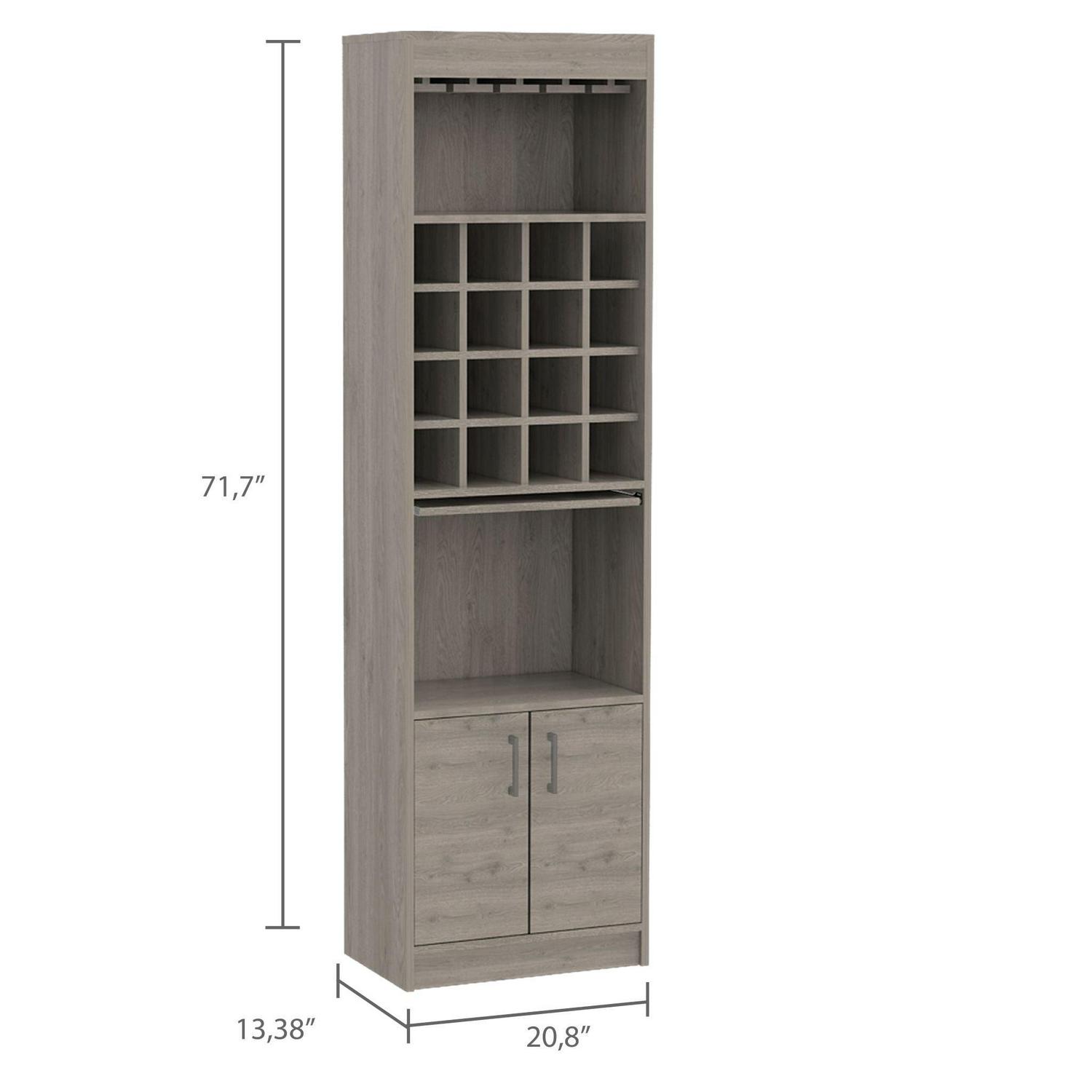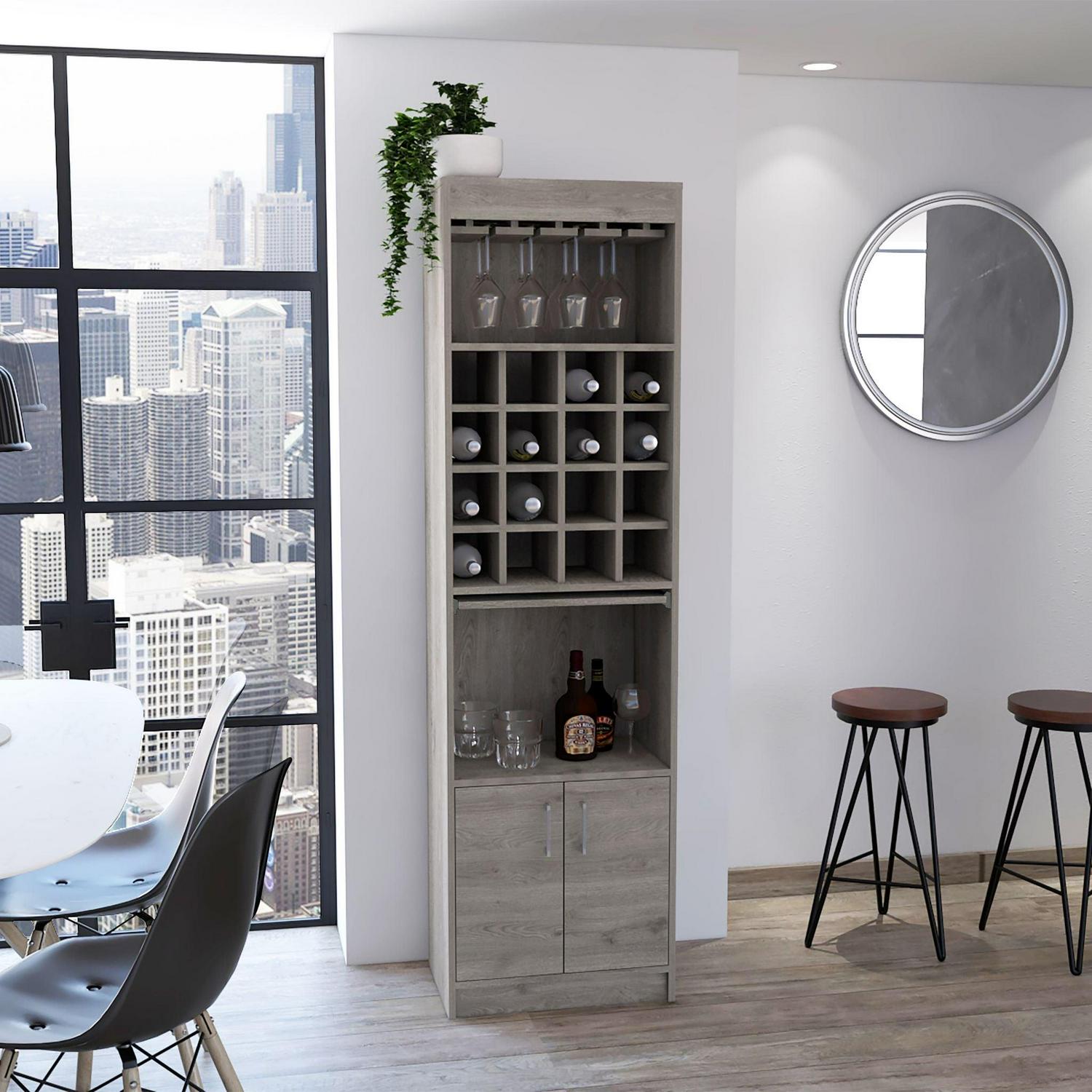 Boahaus Wells Bar with Wine Storage, Cabinets, Light Gray