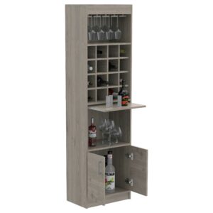 The Boahaus Wells Bar Cabinet has you covered when it comes to entertainment. Stylish design combined with a dark volcano finish that is sure to impress your guests. Comes with a glass rack, 16 cubbies for wine or liquor, a large open area below that’s perfect for displaying your favorite spirits, and an underneath cabinet space that gives you all the storage you might need to keep any gathering going. It features a very convenient and concealable serving table that will help you prepare and serve your drinks, cocktails, and spirits right there on the spot. Product dimensions are: 71.1in Hx 20in Wx 12.7In D