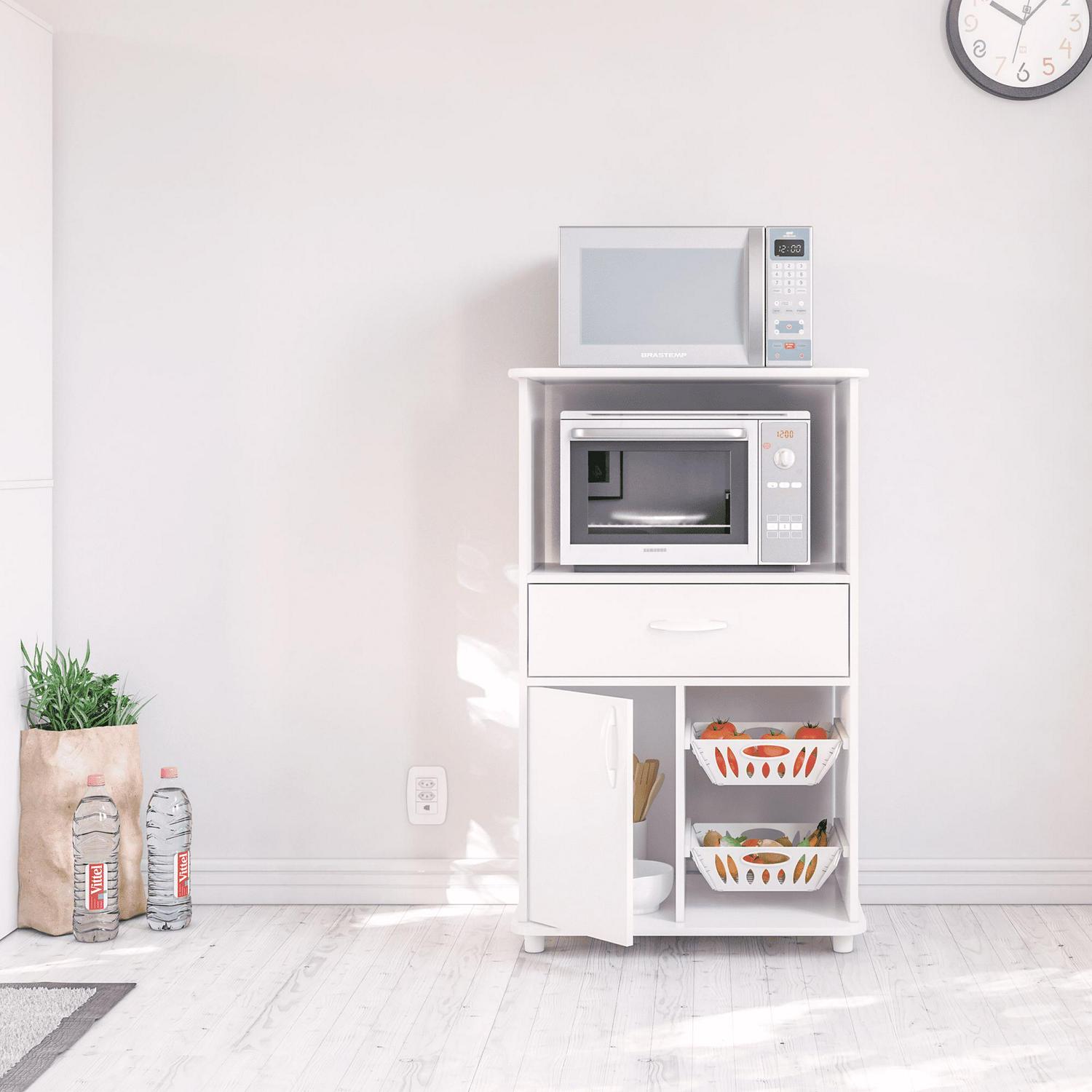 – Open Space: It features an open compartment ideal to place coffee machines, microwaves, or small ovens. Two fruit bowls will give color to your kitchen by placing your favorite tropical fruits there. On top, you can place other appliances to save more space and keep them organized.