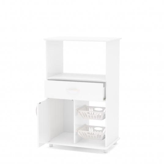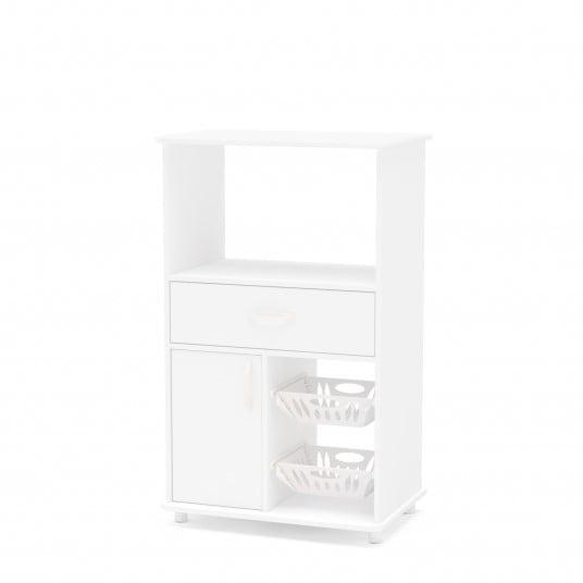 Introducing the Grenoble Pantry Cabinet for Kitchen in a classic white finish. This pantry cabinet is the perfect solution to upgrade your kitchen’s storage and organization. It features a sleek design with practical features to enhance your kitchen’s aesthetics. The cabinet offers a well-rounded storage solution with a single drawer, perfect for utensils and kitchen gadgets, and a spacious cabinet with a concealed door for items like pots, pans, or dry goods. You’ll find two built-in fruit bowls, allowing you to elegantly display fresh fruits. Additionally, it includes a dedicated shelf for your microwave, saving valuable counter space while keeping your essential kitchen appliance within easy reach. Constructed with durability in mind, this pantry cabinet is easy to assemble and will transform your kitchen into an organized and stylish space. Elevate your kitchen storage with the Grenoble Pantry Cabinet in classic white and enjoy the perfect blend of style and functionality. Get yours today!