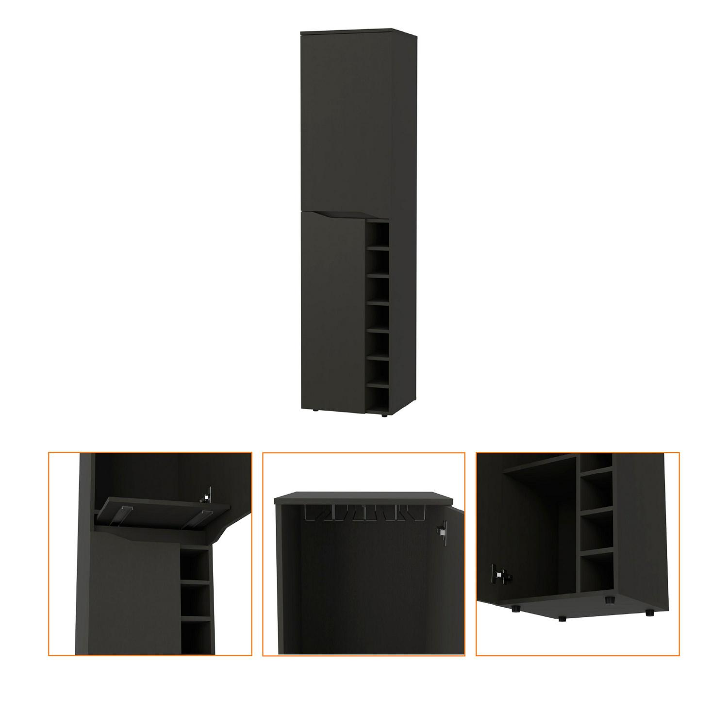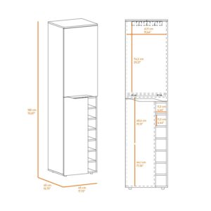 Do you want a stylish, unique bar with ample storage space The Boahaus Winchester Tall Cabinet is what you always dreamed of! This Boahaus modern piece features seven wine cubbies (4.44”) and a mobile shelf that can be customized to fit your favorite cocktails. It also includes two individual one-door cabinets with two Interior shelves (19.13”H x 17.36”H ) for more storage! For its ergonomic size (17,72”W x 15,75”D x 72,83”H), It’s perfect for any space – add your favorite drinks, and you’re ready to go! Made of unique manufactured wood.