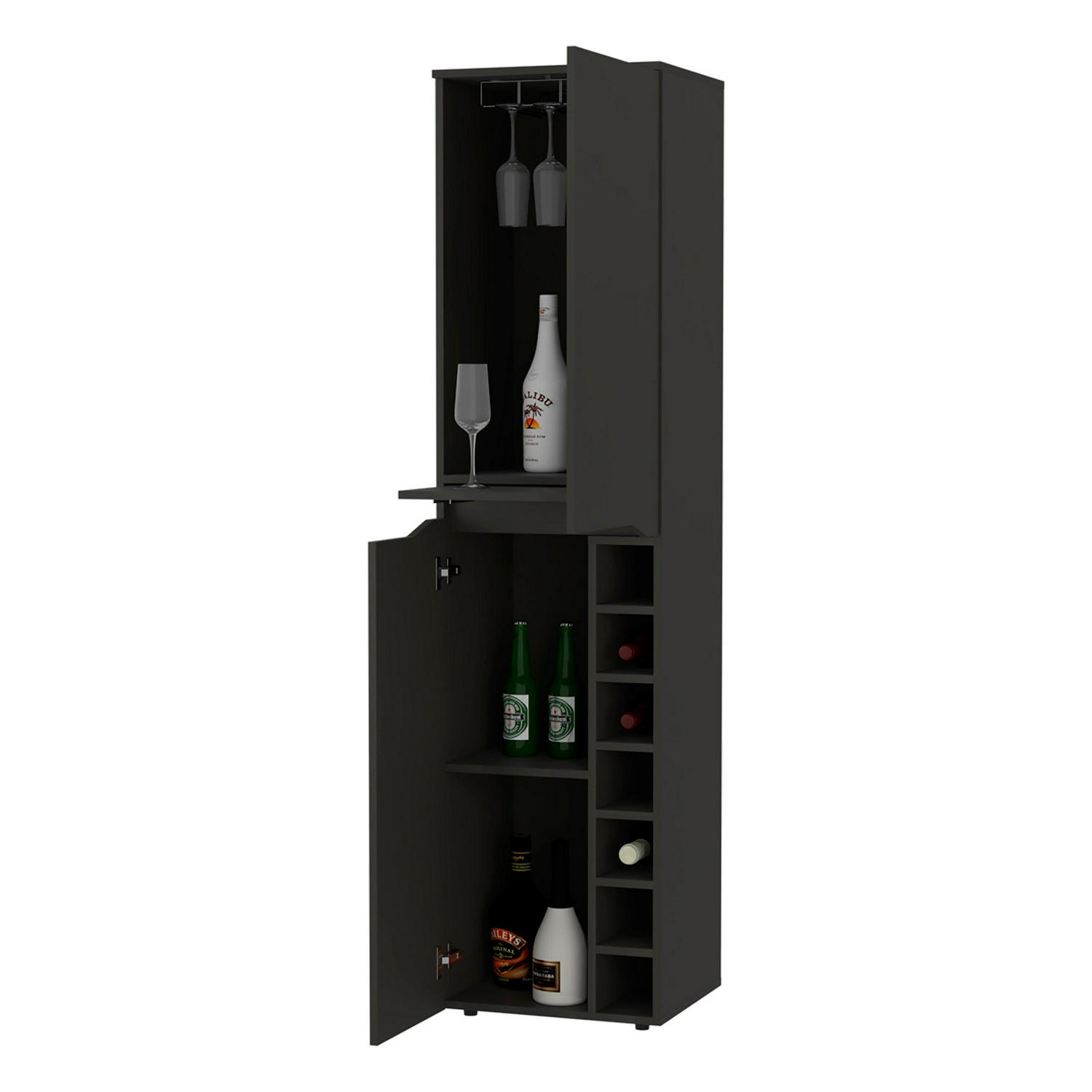 Boahaus Winchester Modern Bar Cabinet, 2 Door, Wine Bottle Rack, Black Wengue