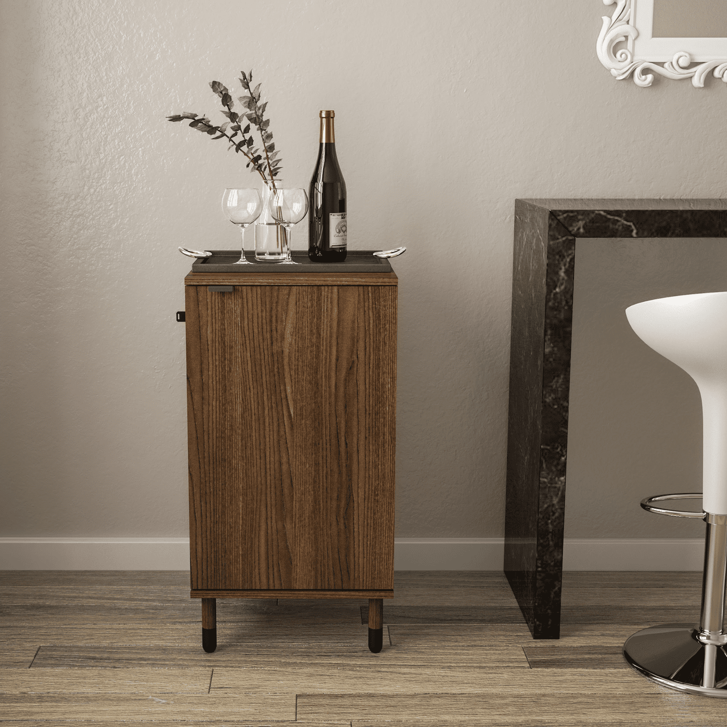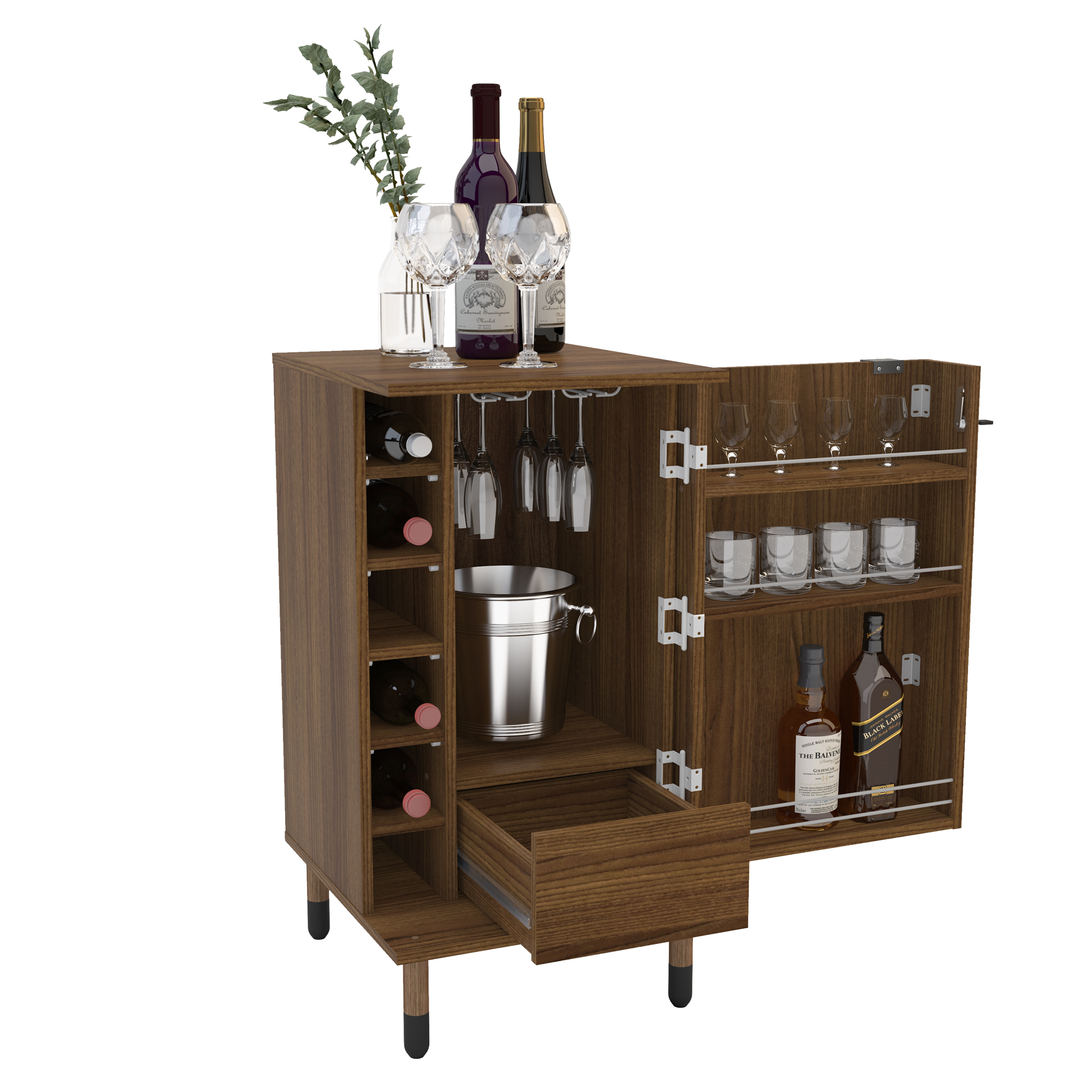 Live in an apartment and aspire to inspire yourself while impressing your family and friends with a space-saving bar cabinet? Look no further than the Boahaus Wrexham Modern and Expandable Bar Cabinet. It’s the perfect addition to your living space. This remarkable bar cabinet is ingeniously crafted with an expandable double-door design. When these doors swing open, they double the size of your entertaining area, providing ample room for your spirit bottles and glassware. The center cabinet of the Wrexham Bar Cabinet offers many convenient storage features, including a handy drawer for your bar accessories like bottle openers, wine stoppers, and cocktail picks. Additionally, it includes a dedicated space for hanging stemware storage, ensuring your glasses are organized and easily accessible. With the Wrexham Bar Cabinet, you have everything you need to entertain your friends in style right at your fingertips. Please note that some assembly is required to enjoy the full benefits of this modern and stylish bar cabinet. Dimensions are 33.25 in height, 19.31 in depth, and 58.61 lb weight.