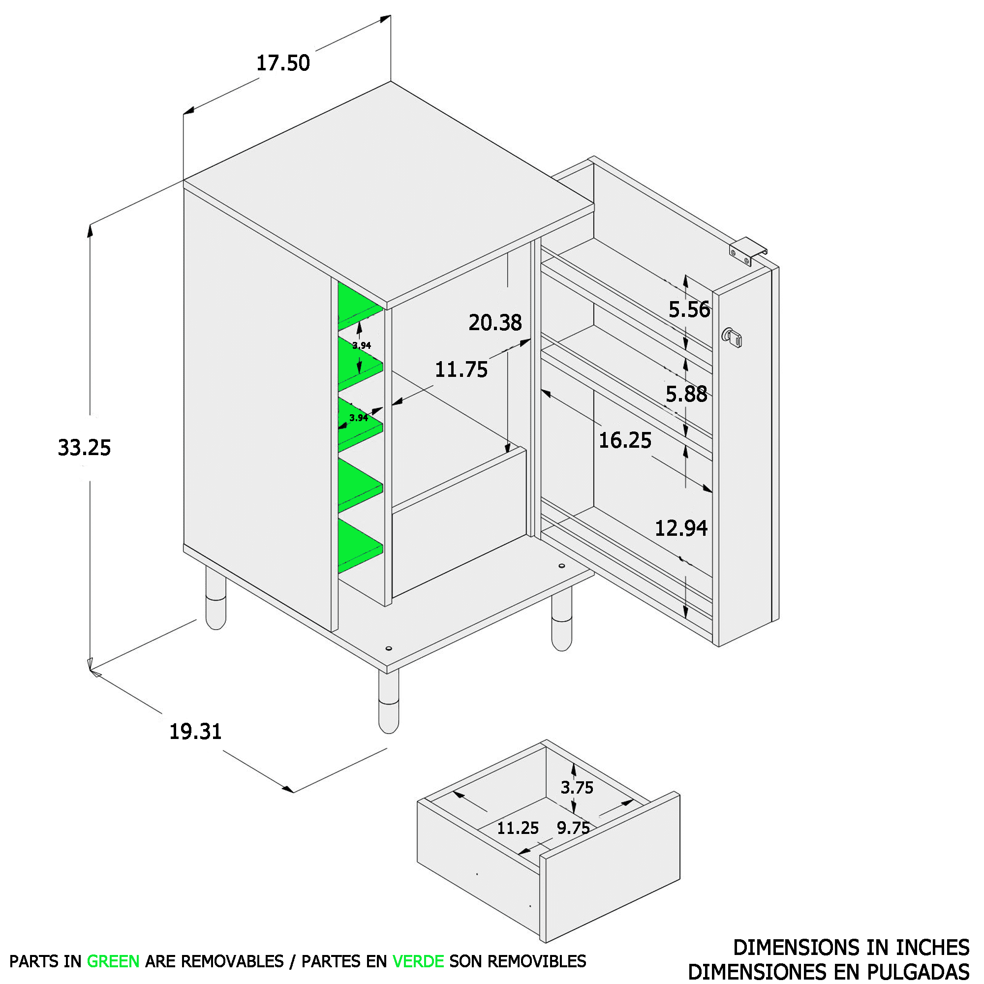 Space-Saving Design for Apartments: The Boahaus Wrexham Modern and Expandable Bar Cabinet is specifically designed to meet the needs of apartment living. Dimensions are 33.25 in height, 19.31 in depth, and 58.61 lb weight. Expandable Double Door Design: The bar cabinet features double doors that open to double the size of the entertaining area. Convenient Storage Features: The center cabinet of the Wrexham Bar Cabinet includes a handy drawer, perfect for storing bar accessories such as bottle openers, wine stoppers, or cocktail picks. It also features hanging stemware storage, keeping your glasses organized and easily accessible. Impressive and Stylish Presentation: With the Wrexham Bar Cabinet, everything you need to entertain your friends in style is right at your fingertips. Customer Support until 100% satisfactory experience: We will provide professional customer service to every customer before and after purchase. If you have any problems, please feel free to contact us by e-mail or phone call, we will reply within 24 hours and give you a satisfactory solution.