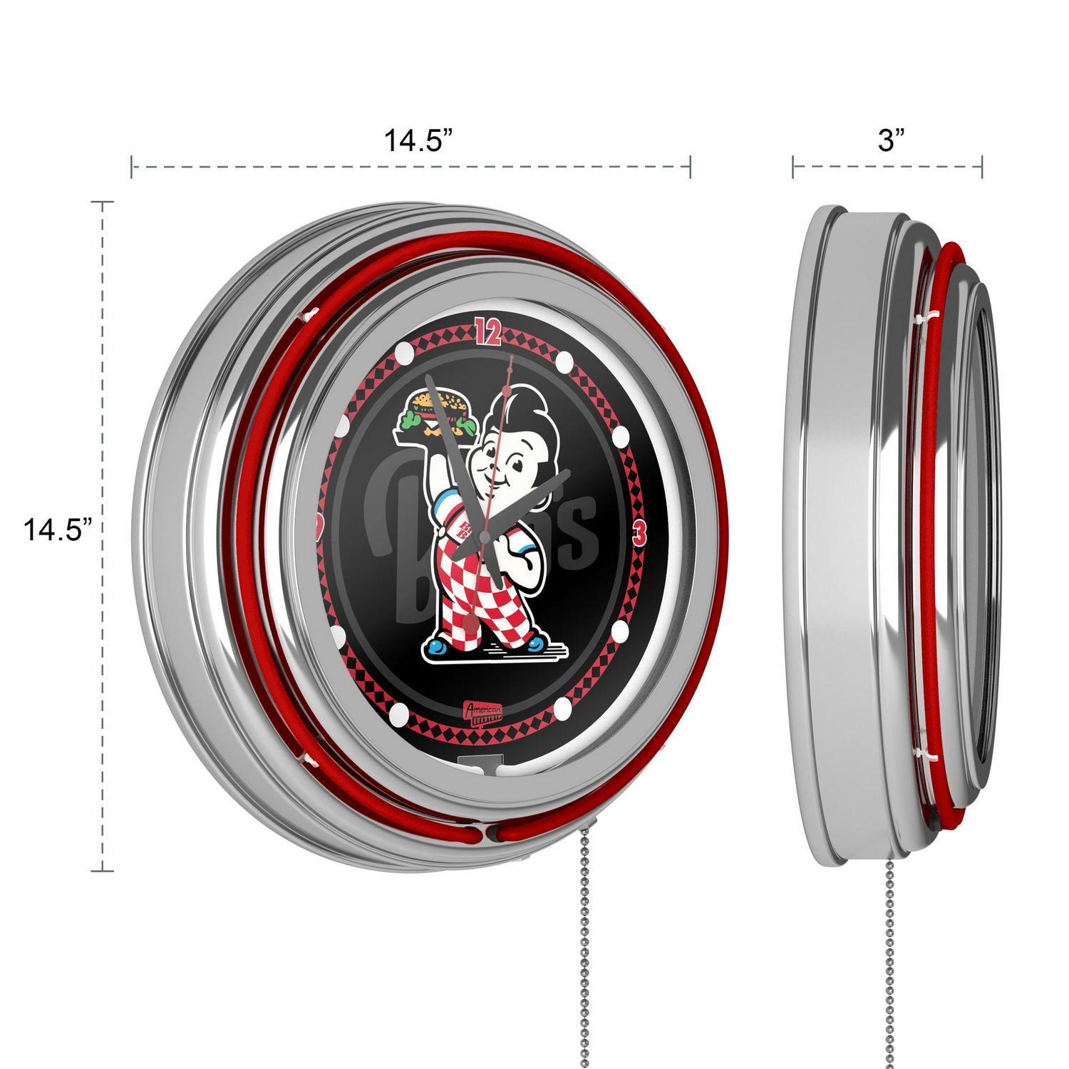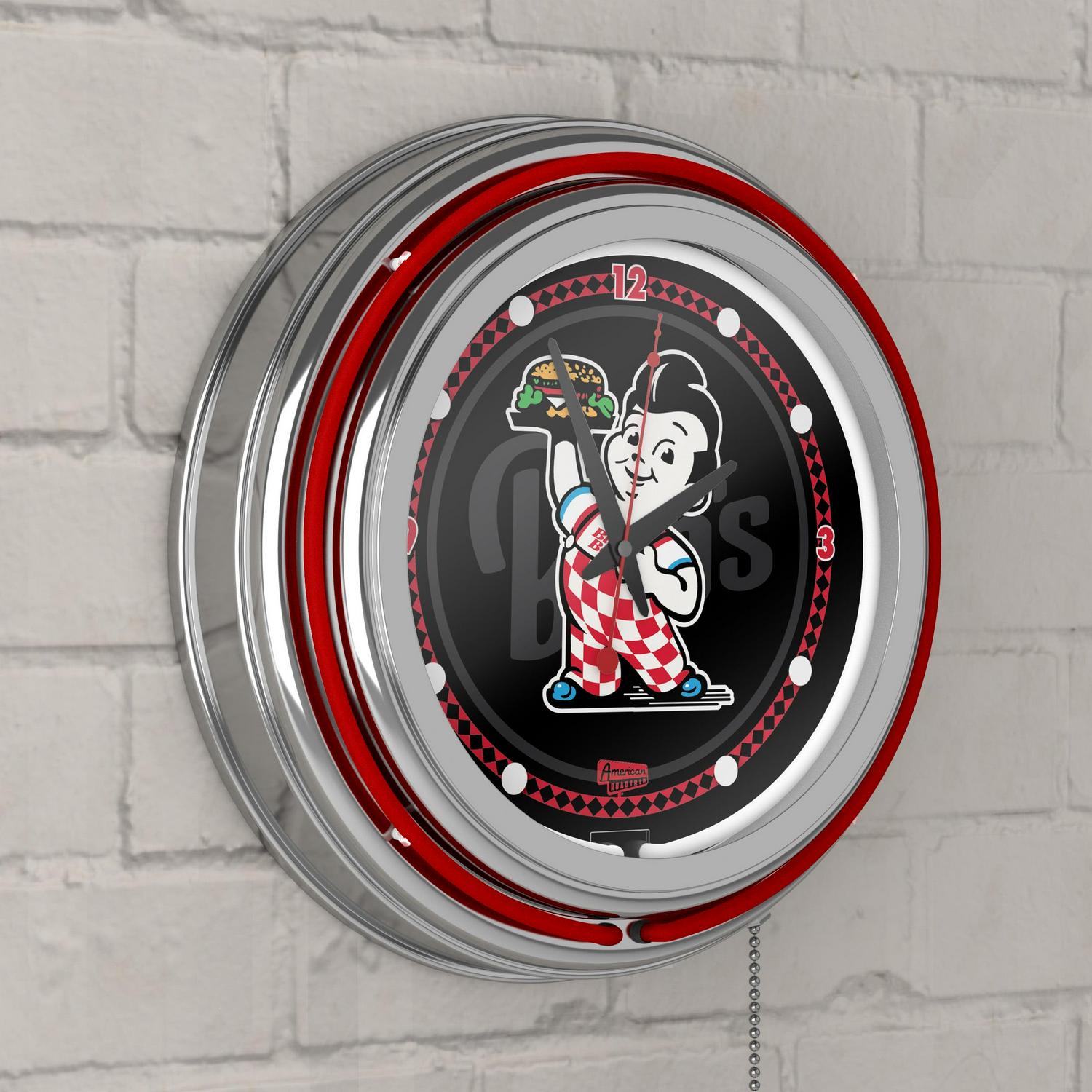 Bobs Big Boy Wordmark Chrome Double Ring Neon Clock