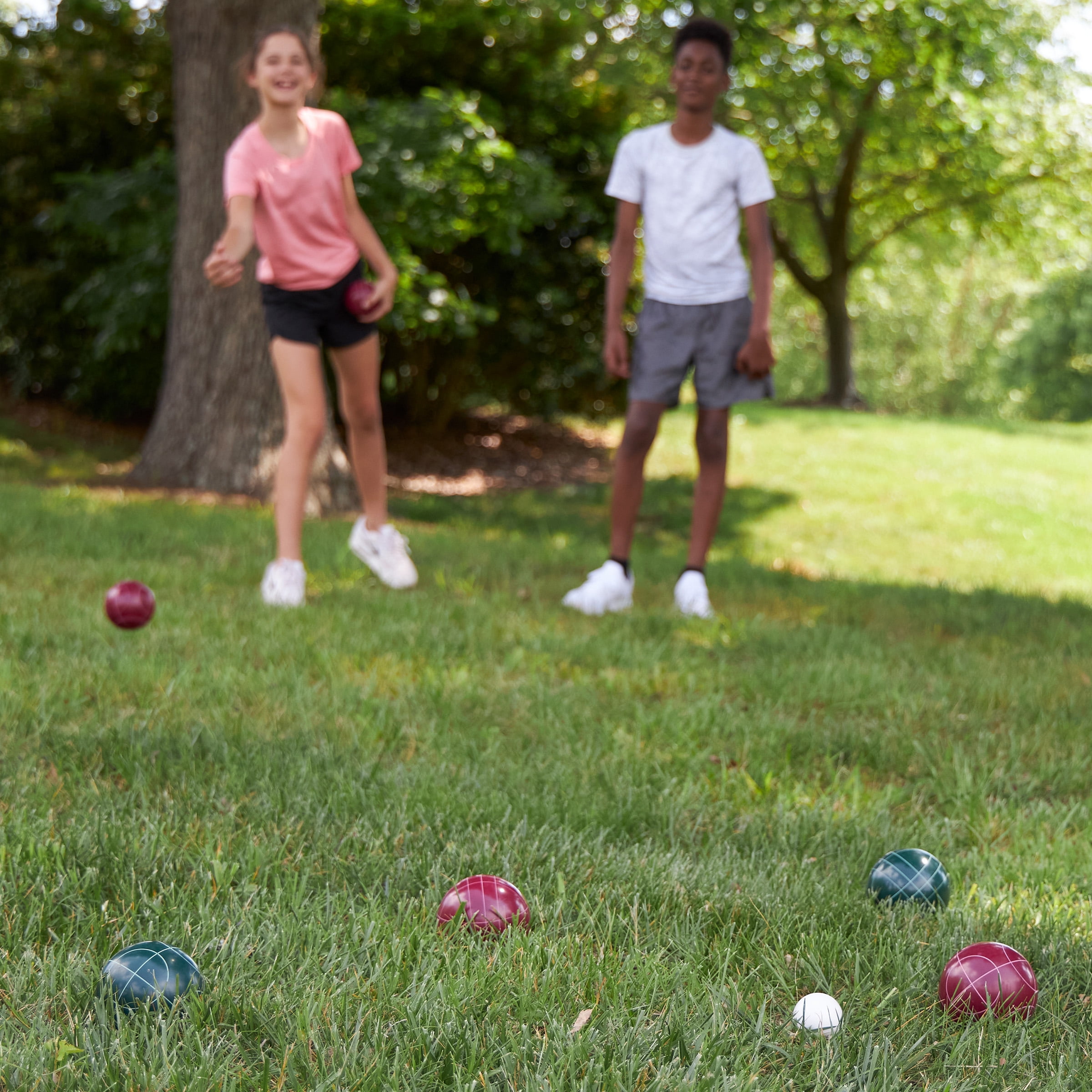 Spend summertime outdoors and enjoy a simple sport with the Bocci Set by Trademark Games. This bocce balls set features heavy-duty resin composite balls and a carrier bag, so you can play in your own yard or take it to the beach for some family-friendly fun. Discover why bocci ball is one of the most popular outside games for adults and family, whether mastering this classic game in tournament-style play or enjoying quality time with friends.