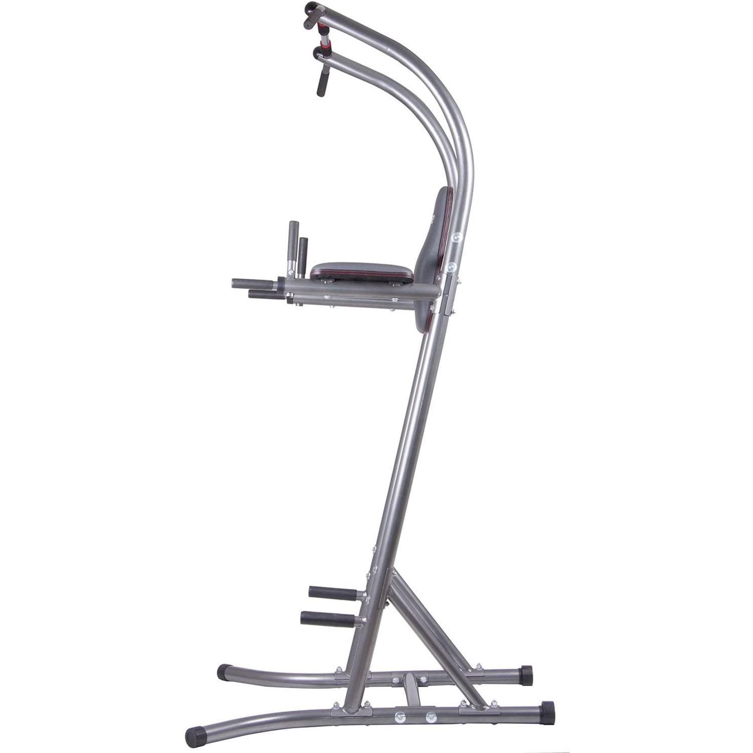 Multi-functional power tower with 5 exercise stations for versatile strength circuits in your home gym Exercise stations include pull-ups, chin-ups, vertical knee raises, dips, and push-ups Ergonomic design features a padded backrest, forearm pads, and hand foam grips to keep you comfortable and supported while you work out Anatomically-angled forearm pads help reduce stress on shoulders and rotator cuffs Dip handles are able to be folded down for clear and free chin-up space Sturdy construction and step-up pegs help you stay stable and secure during your training circuits Color: Gray Dimensions (L x W x H): 41.5 x 42.5 x 84.6 inches Weight: 59.2 pounds