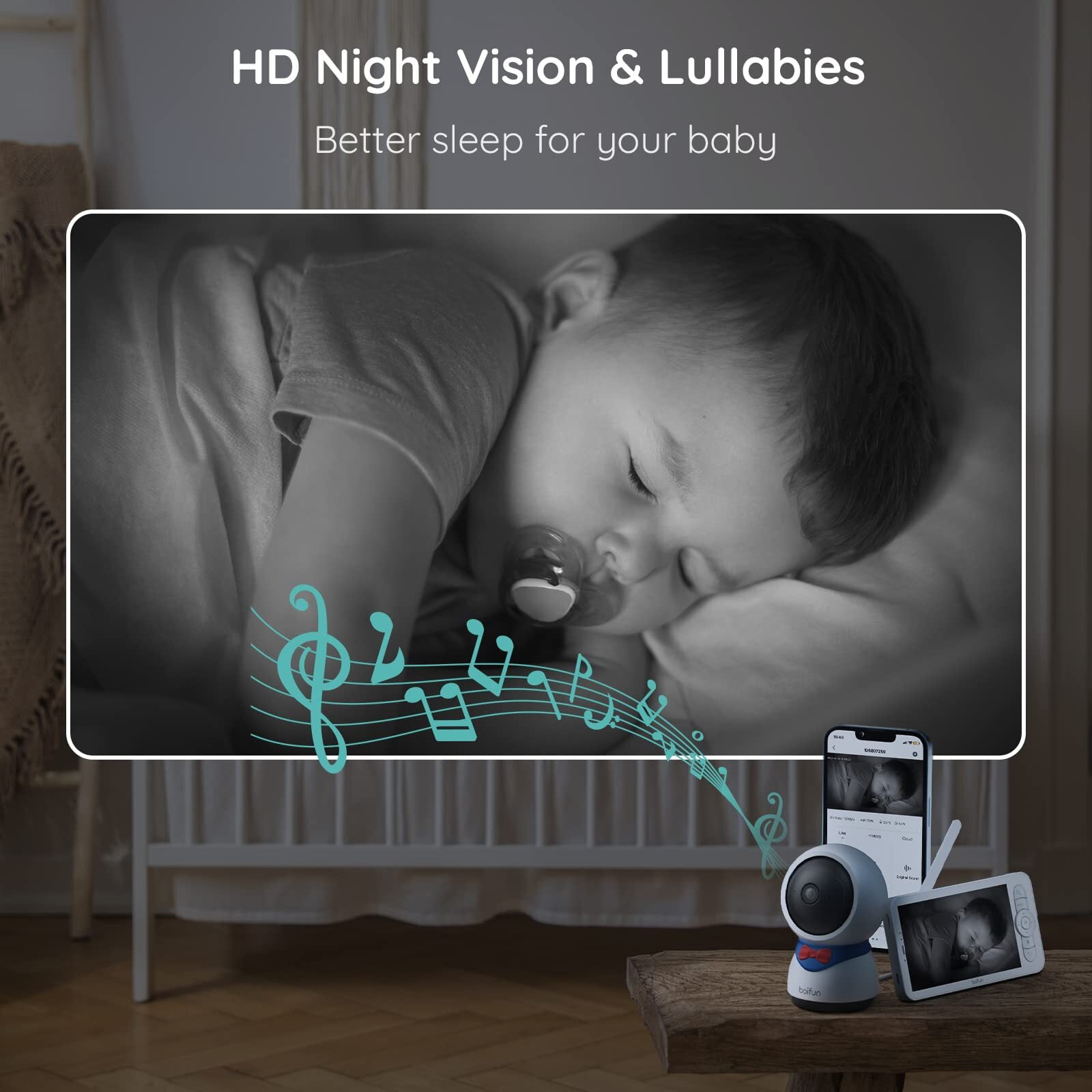 Detailed Image Quality – 1080P & HD Night Vision & 4 x Zoom: BOIFUN video baby monitor features a 1080P high-definition resolution lens with 4 x zoom and night vision function, allowing you to see every little detail of your baby clearly day and night. Owning this video baby monitor, you will never miss every micro-expression, smile even a tiny toe wiggle of your baby. All-Round Protection – Action Detection & Auto-Tracking & PTZ: Featuring a flexible 350° horizontal and 55° vertical rotation, when detecting object movement, the video baby monitor will automatically track the object rotation to help you always pay attention to the status of the baby. A smart Baby monitor can intelligently push alerts on the phone and monitor when detecting your baby in the dangerous zone that you’ve set before. Two Connection Modes – FHSS & WiFi: The monitor and the camera are connected via FHSS (No Wi-Fi needed), and the baby monitor camera can be also connected to the mobile APP through wifi at the same time. Whether you are going out by yourself or traveling with your baby in places without WiFi, a video baby monitor can be used normally. More love from family members, getting closer to your little baby. Peace of mind for the whole family – Multi-user Monitoring & Two-Way Audio: By sharing the QR code, BOIFUN baby camera monitor allows every family member who has downloaded the BoifunCam app to view and hear the baby’s adorable moments. Each family member can talk with the lovely baby and make the baby more familiar with your voice through the video baby monitor. BOIFUN Brings You More Features: The BOIFUN video baby monitor with camera and audio offers a multitude of functions, including screen recording, playback, and screenshotting, lullaby, and feeding clock displays; and SD card & cloud storage, amongst various other functions. BOIFUN Baby monitor is a considerate and decent gift for families with newborns.