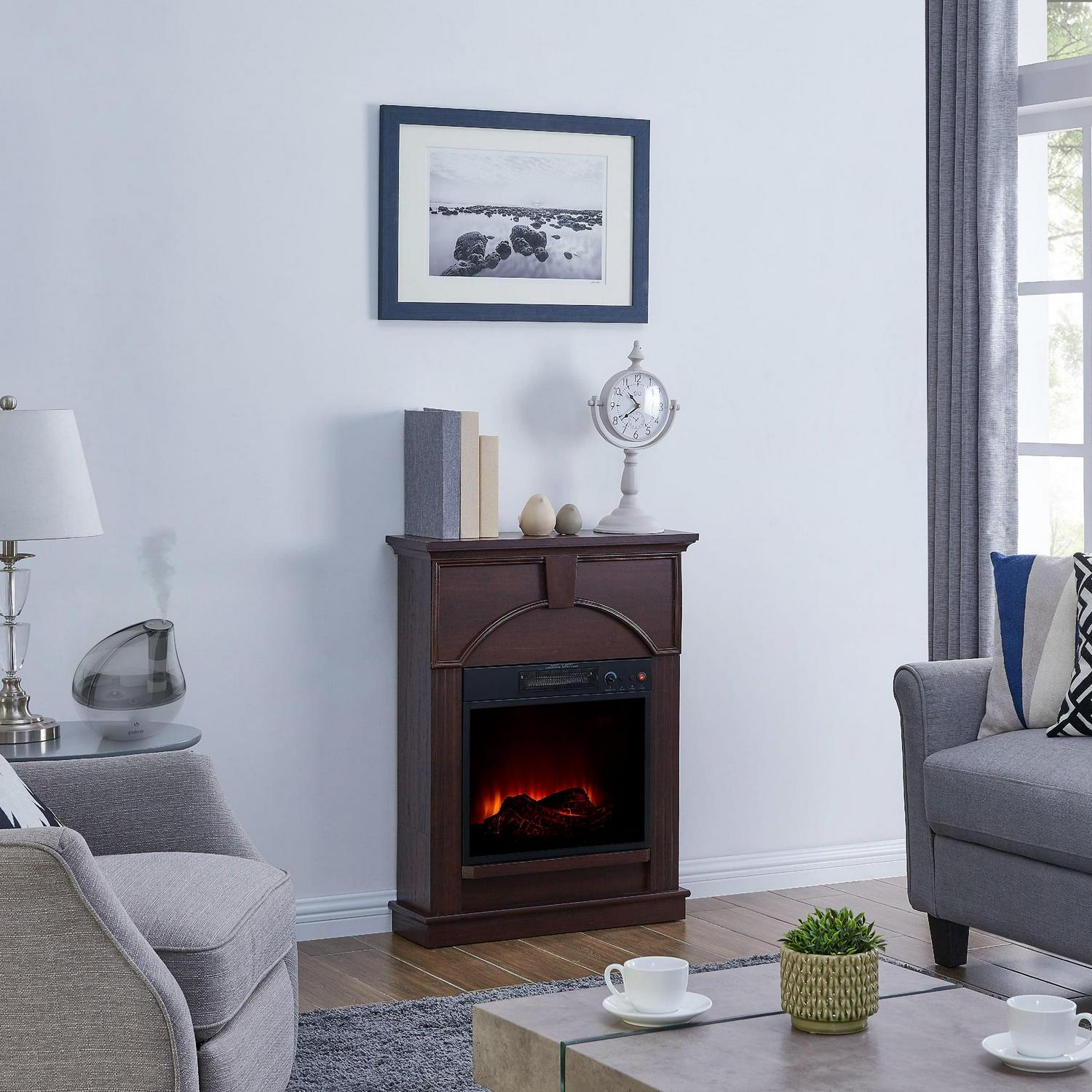 Bold Flame 26 inch Electric Fireplace in Dark Chocolate and MistAireA AcAca !A 3/4 A Ac Ultrasonic Cool Mist Humidifier, Silver