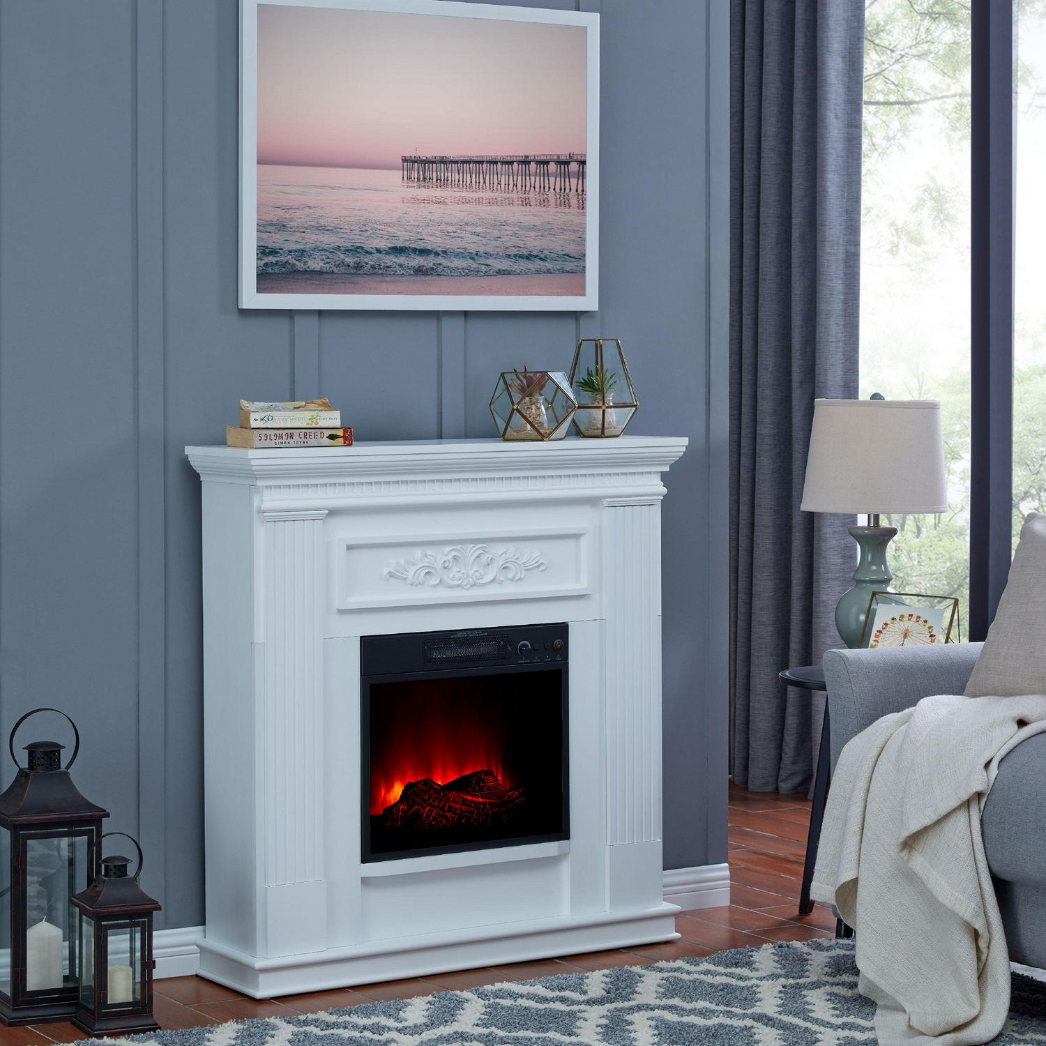 Stay warm all fall and winter long using the Bold Flame Electric Fireplace. This chic and stylish piece will amplify your home decor and add a charming addition to virtually any room. The 38″ electric fireplace fits in a variety of spaces, and the white color is versatile and looks lovely with many different interior designs. The remote-operated temperature controller has convenient push-button controls with an LED readout and can be used to adjust the fan-forced heater to meet the user’s comfort preference. The adjustable settings on this electric fireplace offer various flame levels and ember-bed brightness settings, which add ambiance to the room. Set the temperature to keep your space cozy and warm at any time of day. On warmer days, it can be set to display attractive LED flames without any heat. A thermal cut-off are included on this Bold Flame Electric Fireplace for added safety.
