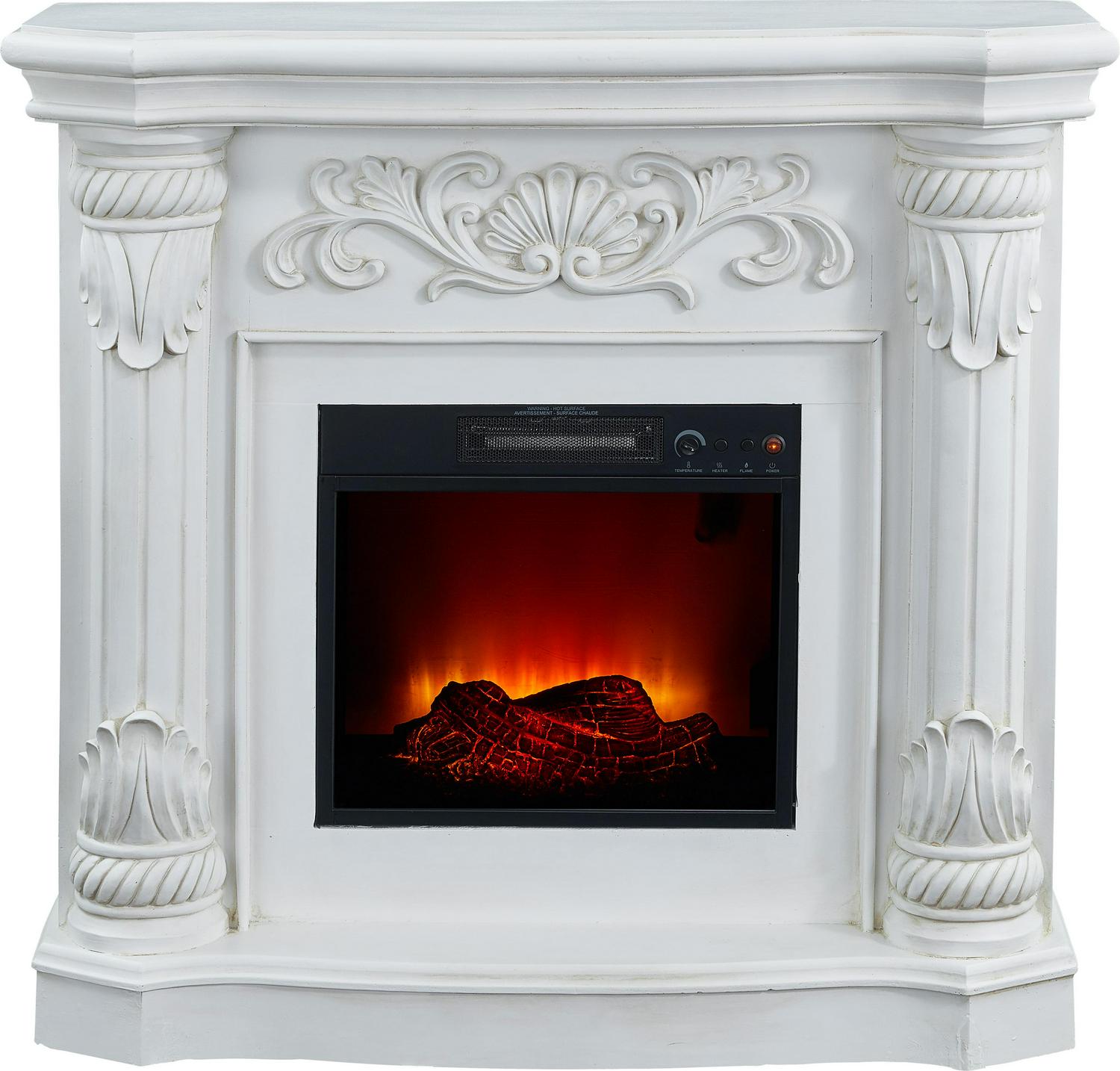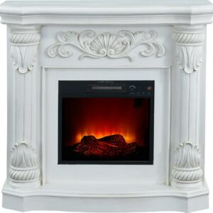 The Bold Flame 40″ Electric Fireplace in White gives any room a functional, cozy and attractive look. It features an adjustable temperature with a five-level flame and ember bed brightness settings with an LED flame effect with or without heat. This free-standing electric fireplace comes with a convenient remote control, so you can control it from the comfort of your sofa or bed, and it also has push-button controls with an LED readout. It features a safety thermal cut-off, so you never have to worry about leaving it on. It has a classic and traditional design that can blend into any home decor. This product is powered with 4,600 BTU and 1,4000 watts. It provides additional supplemental heating for up to 400 square feet.