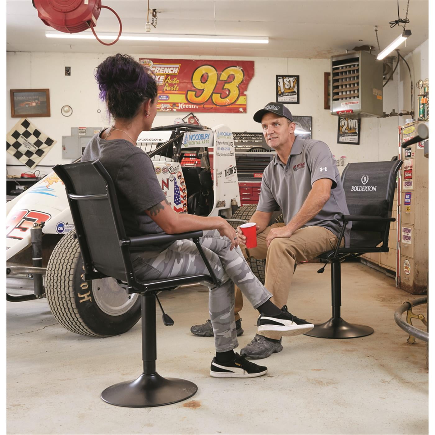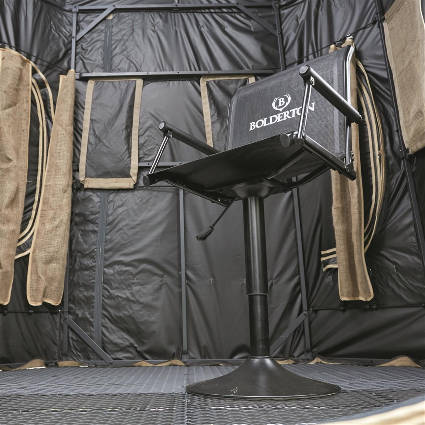 BOLDERTON XL SWIVEL TOWER HUNTING CHAIR The Bolderton XL Swivel Tower Chair is built for hunting. It can be used with an elevated deer blind for a comfortable hunting experience. The heavy duty powder-coated steel frame is highly durable for hunting equipment that lasts. The extra wide base provides reliable stability and a silent 360 degree swivel for stealthy visibility in all directions. Our hunting chair features a water-resistant mesh seat for protection whatever the weather. COMFORTABLE The Bolderton XL Swivel Tower Chair has been built with comfort in mind. We’ve added padded armrests and removable lumbar support to prevent aches and pains when sitting for long periods. It’s easy to transport the hunting chair anywhere with the removable pedestal and folding chair. FEATURES Powder-coated steel frame Water-resistant mesh seat Padded armrests for comfort Removable lumbar pad Wide base provides excellent stability Silent 360° swivel for easy viewing in all directions Pedestal adjusts from 19″ to 24″h. Easy to transport with removable pedestal and folding chair 17.5″ diameter base with non-skid ring