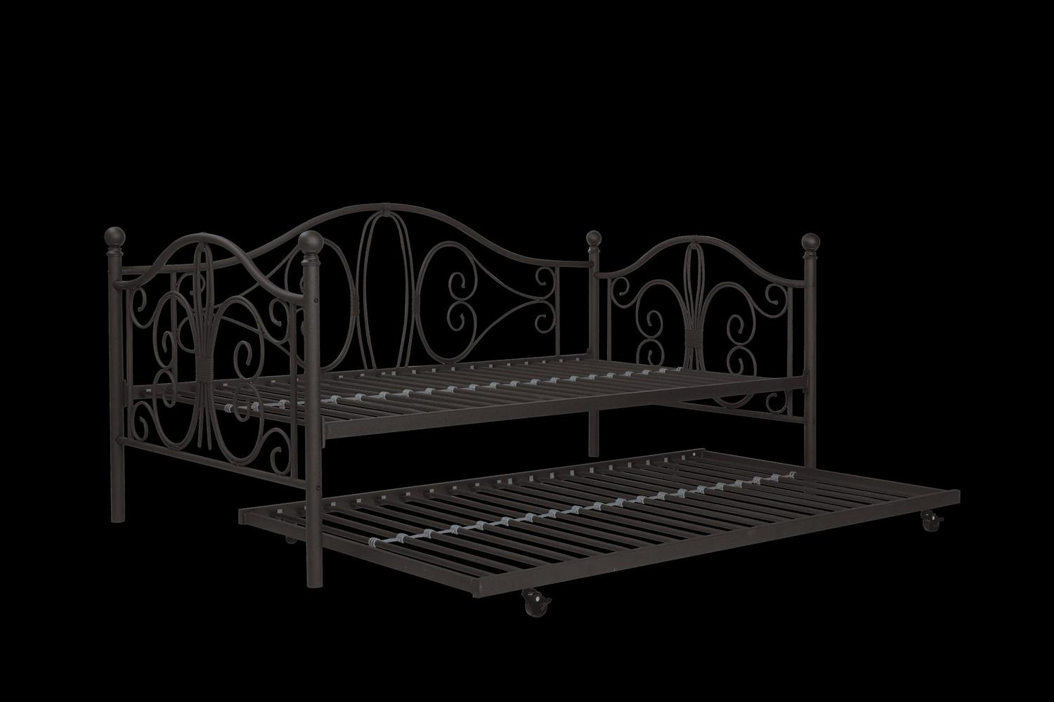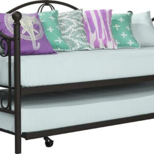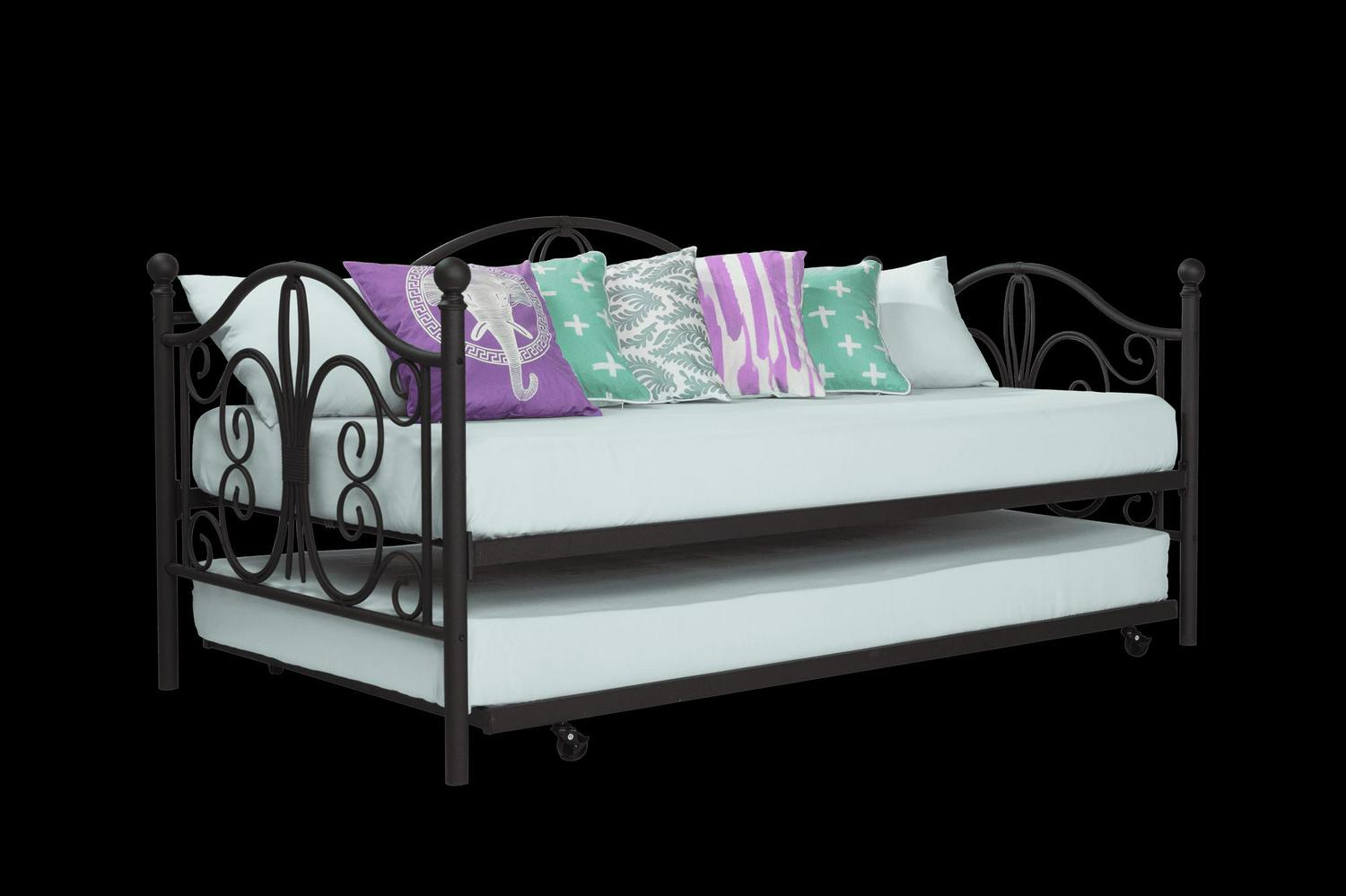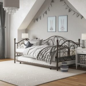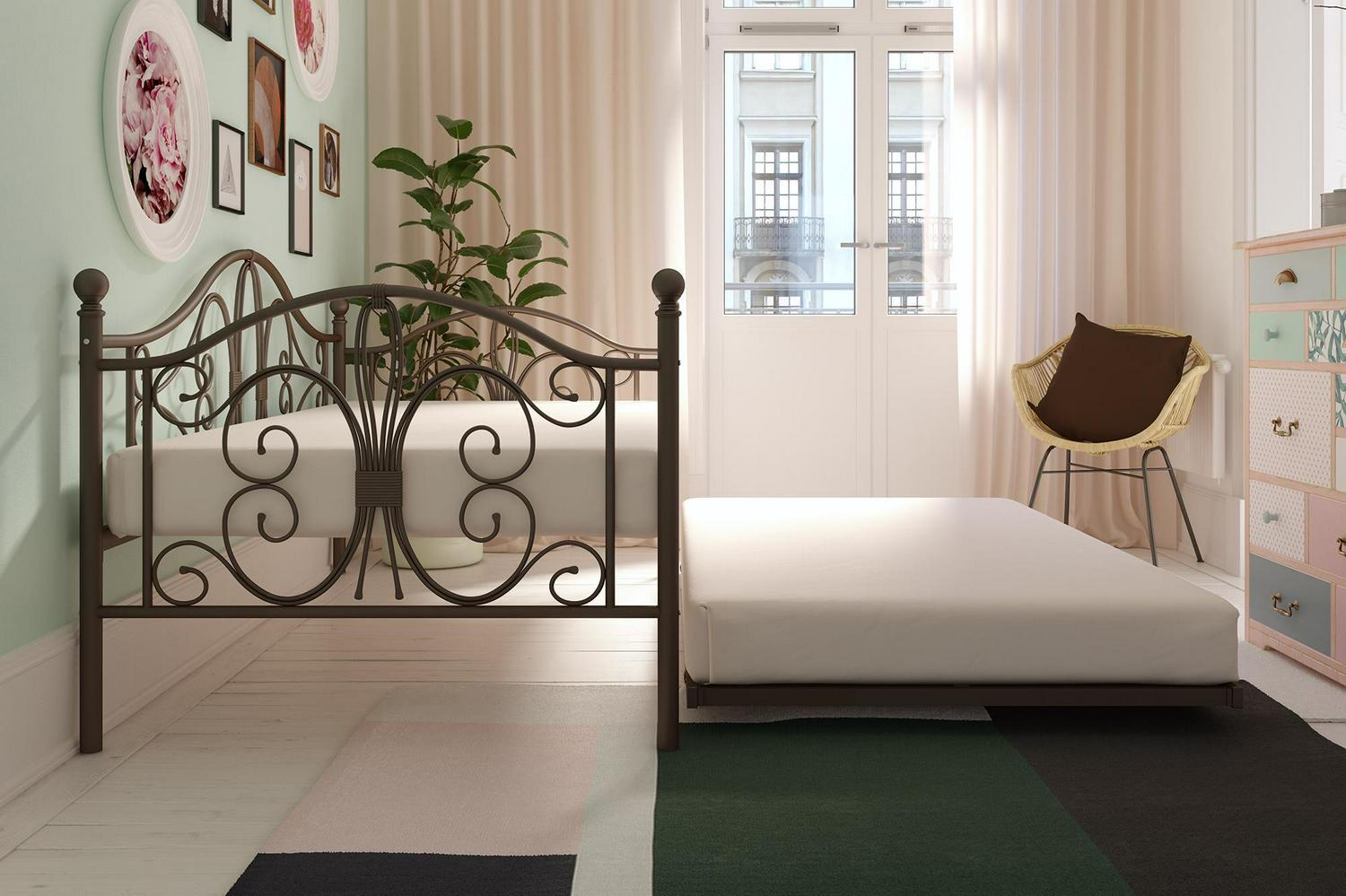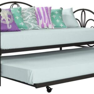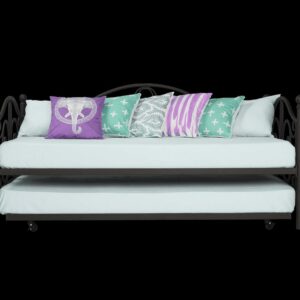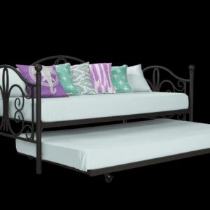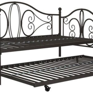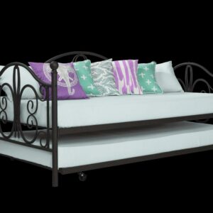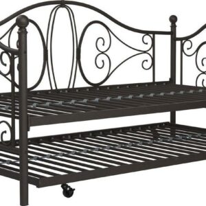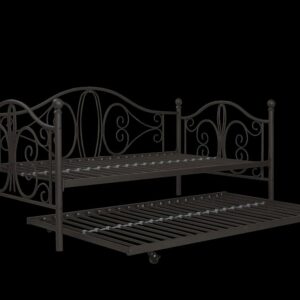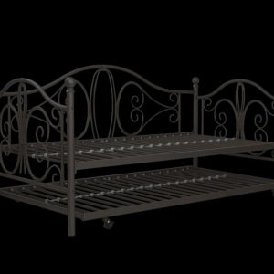 Inspired by the Bombay Metal Bed, DHP has designed a daybed with trundle that exudes a whimsical charm with its elegant curves and detailing. The DHP Bombay Metal Daybed and Trundle is built with a sturdy metal frame that is the perfect addition to any living room, bedroom, child’s bedroom or studio apartment. Available in multiple colors, in Twin and Full sizes, the DHP Bombay Metal Daybed and Trundle is the key to dressing up your room and will become the focal point of your interior décor. It also offers the perfect solution to limited space in small homes. Combined with true practicality, the DHP Bombay Daybed comes with a roll out trundle that locks into place to provide the perfect bed for accommodating overnight guests and offering a comfortable night’s sleep. The daybed and trundle are also equipped with secured metal slats to provide additional support and durability. The Bombay has stunning value and design, all in one package!