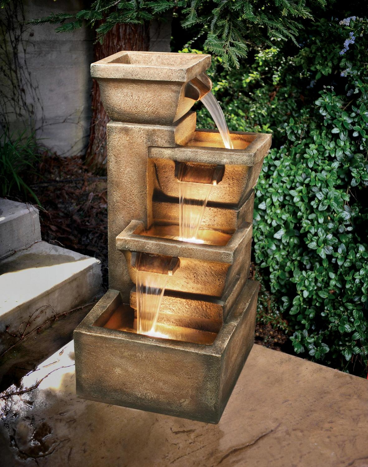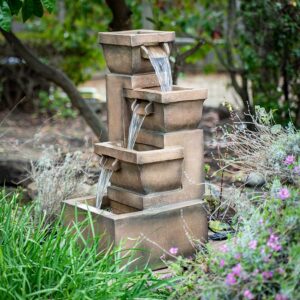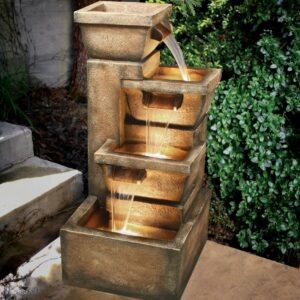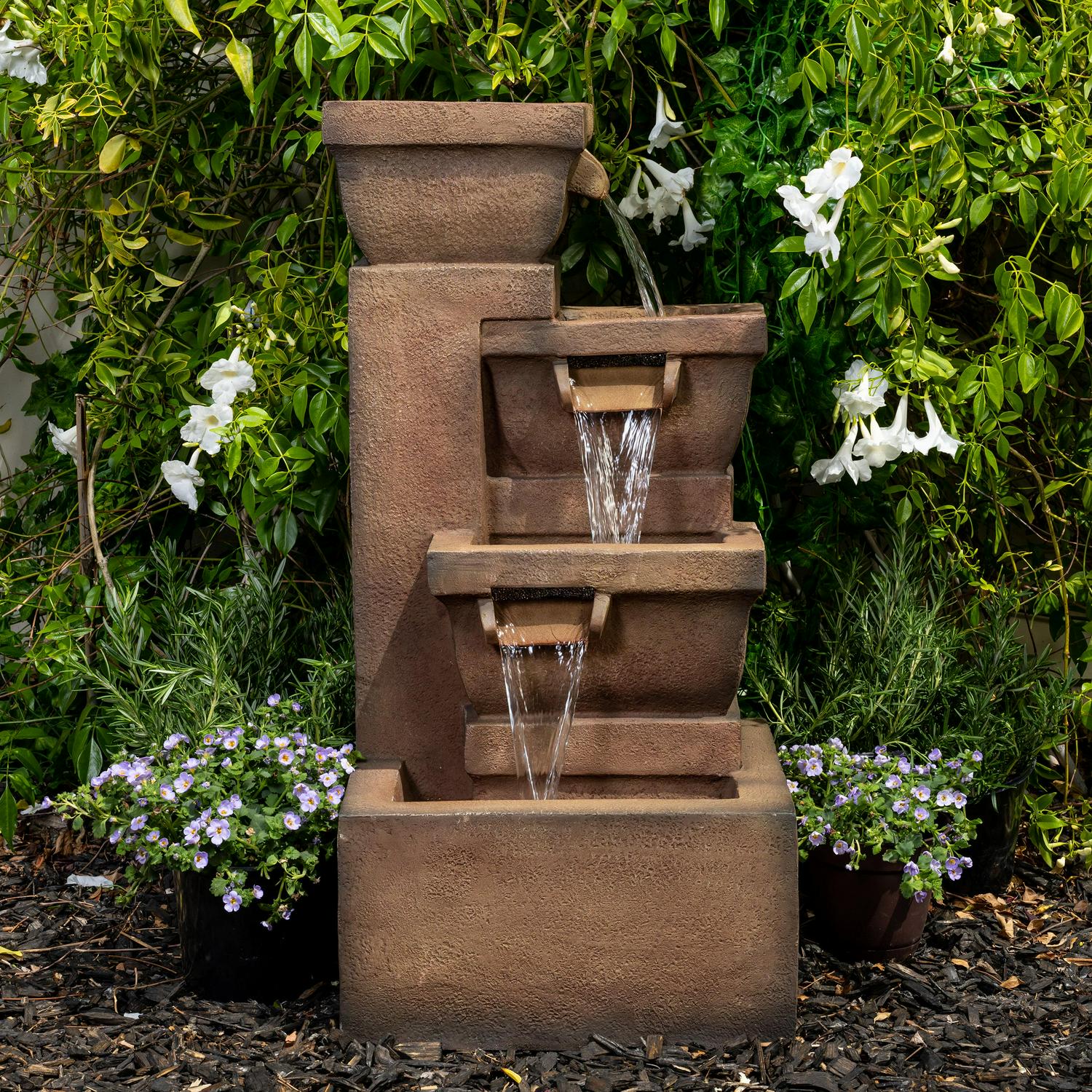 Bond Ashboro Rustic 32 Electric Indoor/Outdoor Polyresin 4-Tier Fountain, LED Lights