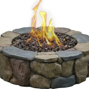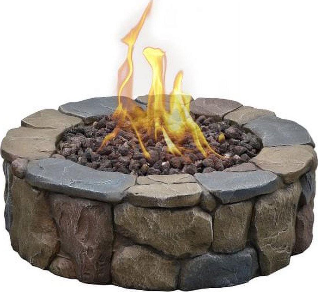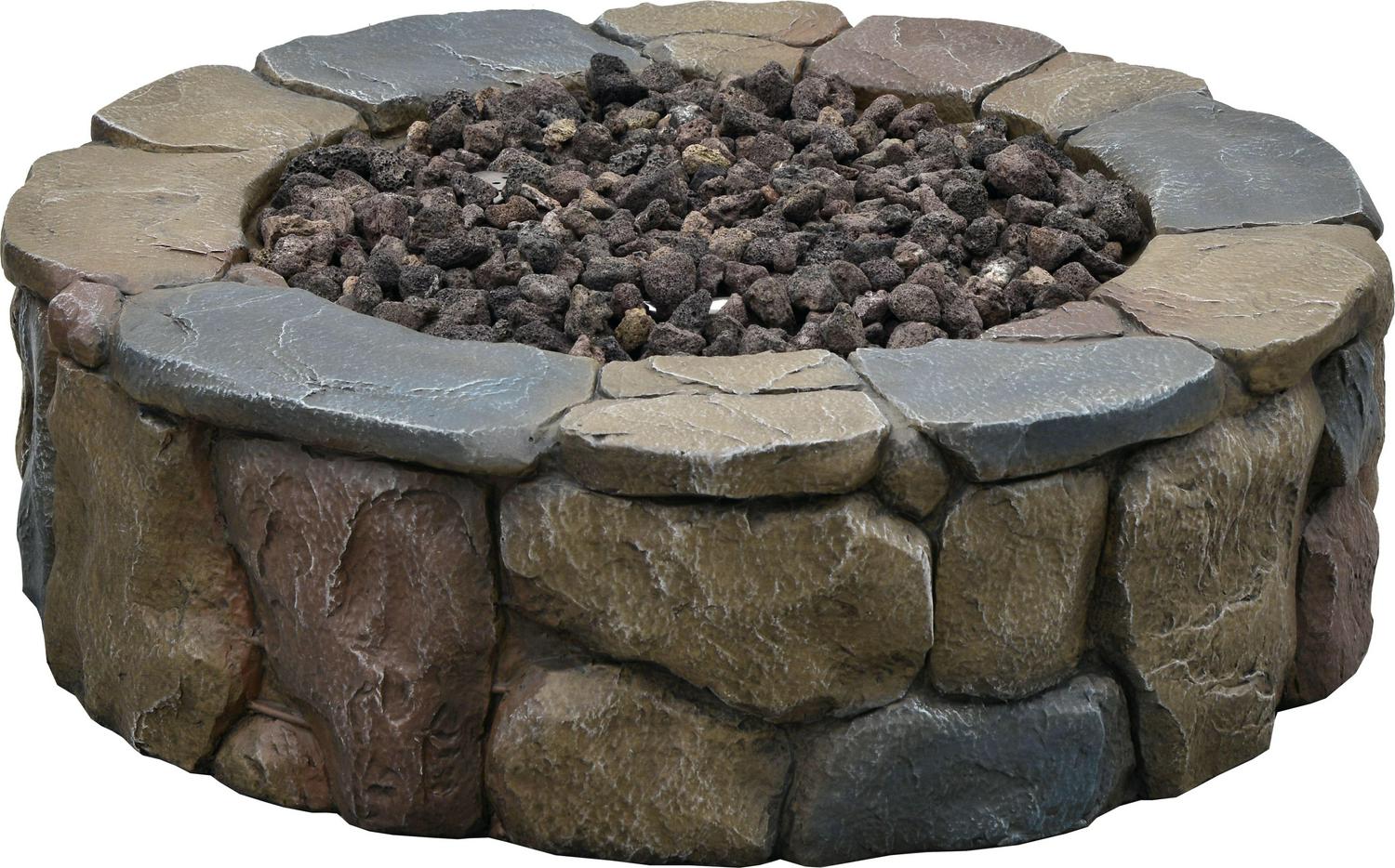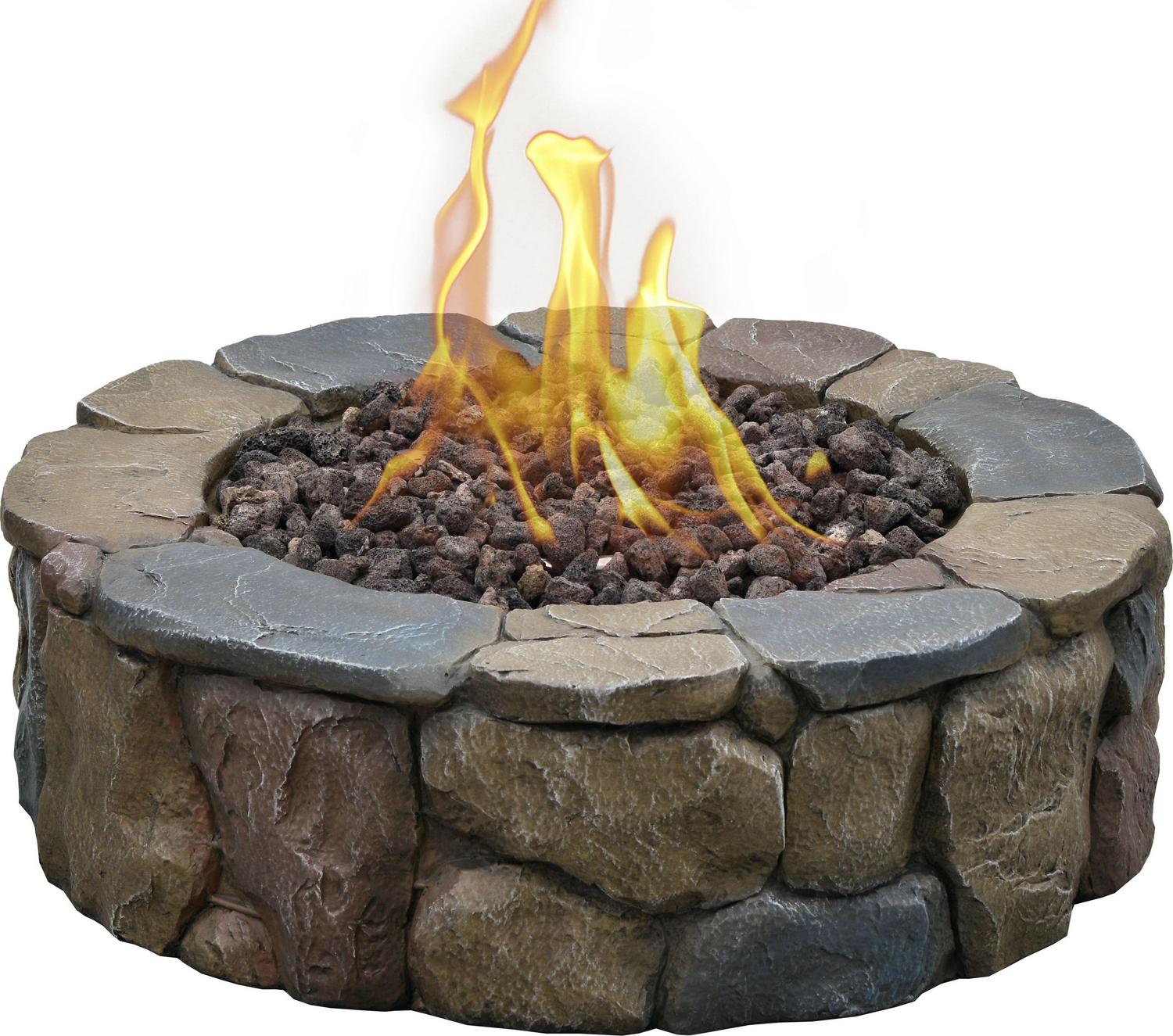 The 30 Petra Gas Fire Pit is created to satisfy your desire for a rustic natural looking firepit, as your new outdoor gathering spot. This classic stone lookalike design will accent your backyard seating area and can be moved for indoor storage during the harshest of winter weather, without the hassle of moving heavy stone. Constructed of durable and lightweight Envirostone, with ProCoat sealant to give it UV protection and scratch resistance; you can look forward to years of enjoyment. With just a quick turn of the pulse ignition system, you ll by ready for backyard relaxing in style. Prepare to take pleasure in a fireside visit with your favorite guests while basking in the glow of a cozy fire, from the comfort of your own patio. The 30 Petra Gas Fire Pit is the perfect combo of rustic style and quality, sure to be a focal point in your social gatherings for years to come. The simple, rustic stone-look complements many décor styles, so you can unwind with style and comfort. Made from Envirostone; a durable, lightweight material specially chosen for outdoor products with its ProCoat sealant, with UV and scratch resistant qualities. Easy to light and extinguish with the built-in pulse ignition system, you may quickly adjust the size of the flame with the convenient control knob. Includes 10 ft. gas extension hose and a seat for propane tank, to be able to place it away from the 30 diameter firepit. Includes LavaRocks for the fire bowl, and a lightweight protective PVC cover for when the fire pit is not in use.