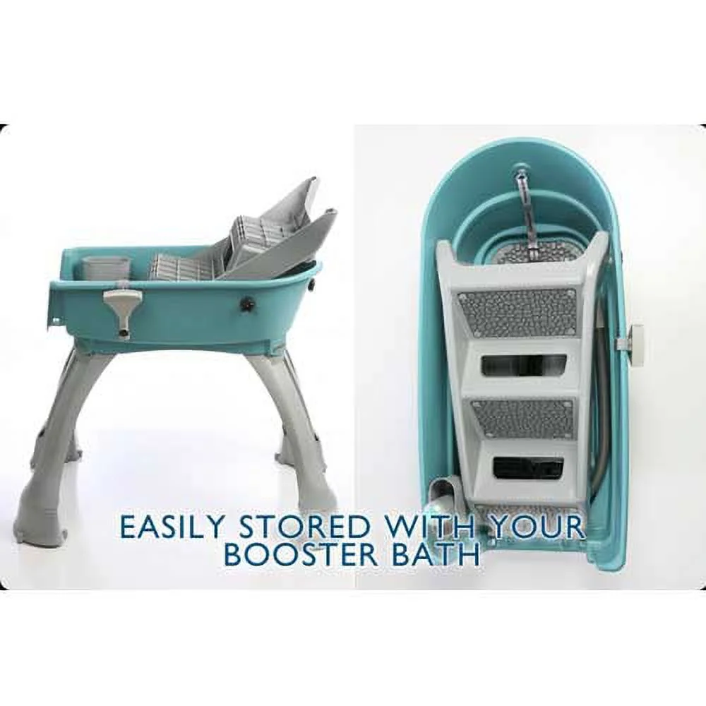 Booster Step is very durable and works great when attached to the Mini and Large Booster Bath. Booster Step also works fantastic with your car door threshold, SUV bumper, couch and bed. Booster Step weighs only 4 pounds however with its multiple rib system can easily support 150 lbs. The no-slip rubberized step mats insure your dog maintains secure footing. In addition there are four large rubber bumpers located on each corner that insure Booster Step stays in place when your dog enters, or exits. The patented Booster Step is the most compact, functional and affordable plastic Step available in the market today! We guarantee you will love it or your money back! Features: Lightweight and portable (4ᅢテ?ᅢツᅡᄑ lbs), yet will support up to 150 lbs. Made from ᅢテ?ᅢツᅡᄐ? inch thick UV stabilized virgin polyethylene for long life and durability. Like the Booster Bath, the Booster Rampᅢテ?ᅢᄁ??s cushioned mat is 3/8 of an inch thick and is strong a durable. Dimensions: 19″ x 6″ x 34″ Dimensions 38 x 20 x 14