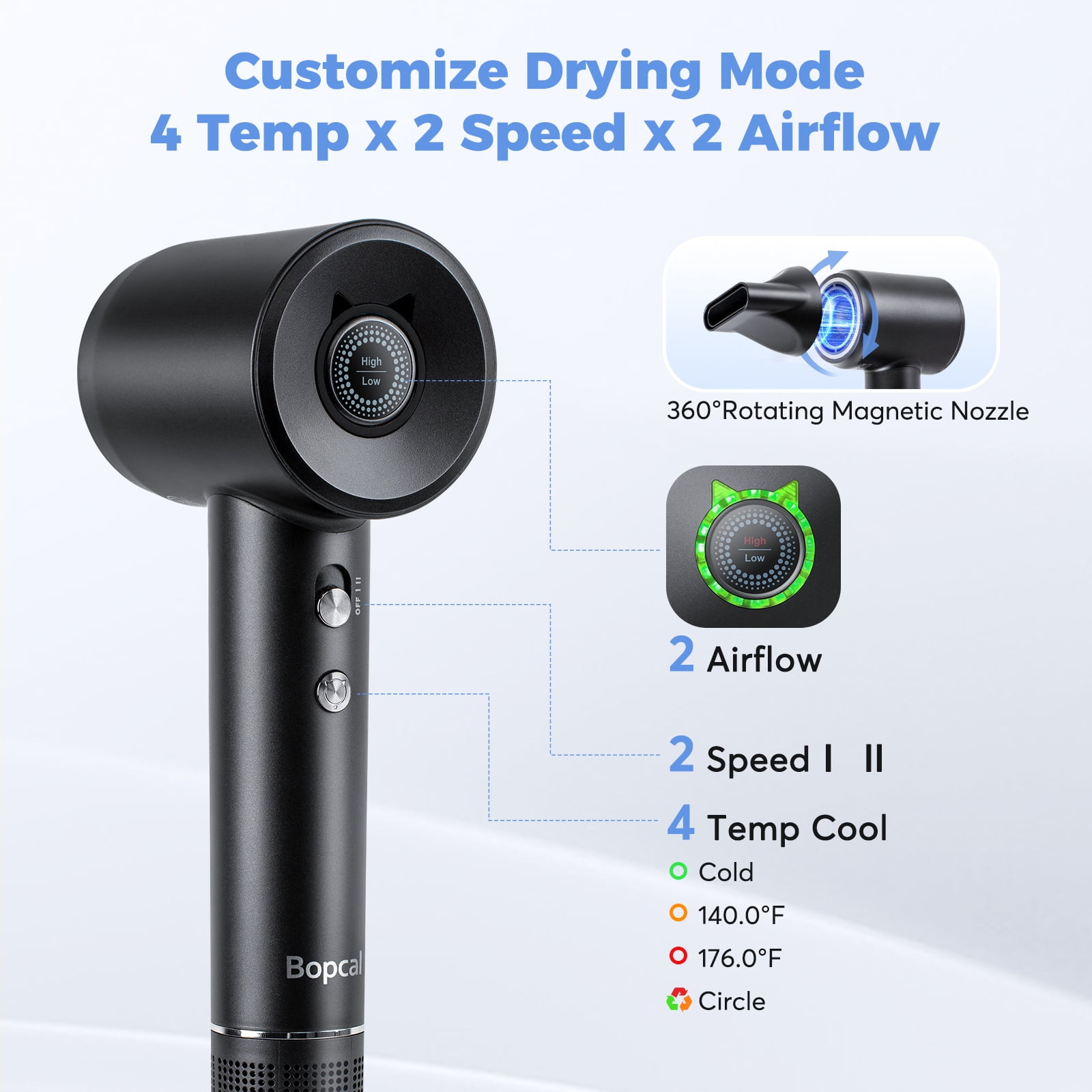 High Speed Hair Dryer-Bopcal Blow Dryer with 4 Temps & 2 Speeds,200 Million Negative Ions Hair Dryer for Home, Travel and Gift Choice(Black)
