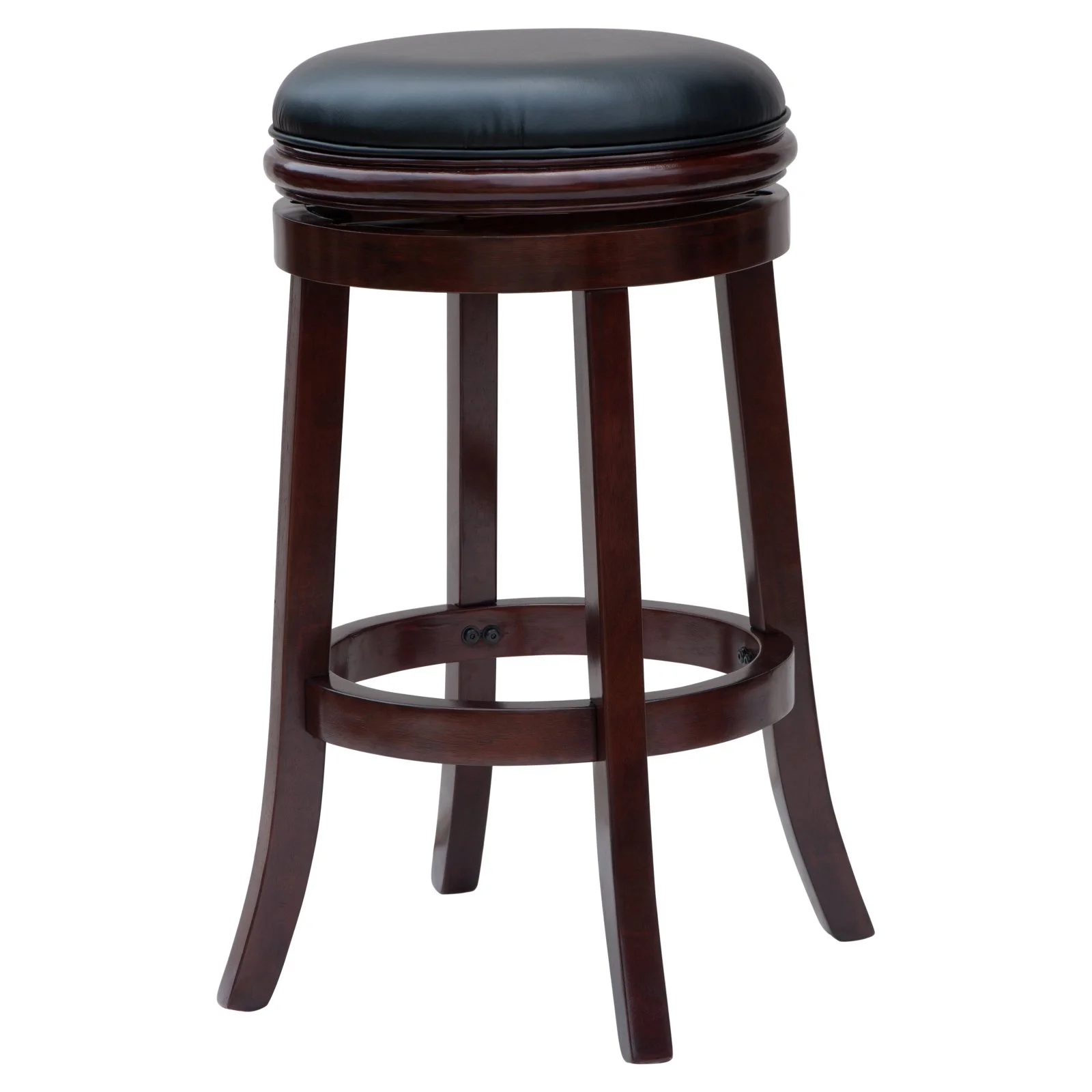 Look no further than the Boraam Backless Stool to complete your home bar, kitchen, or game room. This bar-height backless stool swivels in a full 360-degree circle, supported by a ball-bearing swivel plate. A double-seat apron and stability stretchers offer additional durability and comfort. The frame is made from solid rubberwood while the cushion is padded out with high-density foam. Finally, flared legs and single welt cord trim add handsome style to the design. This backless stool is also available in counter height options. The Boraam Backless Stool comes in two different finishes – just pick your favorite!