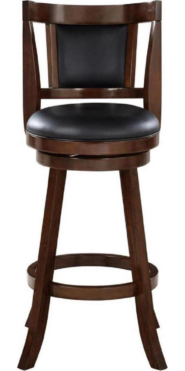 Safety, durability, and design are all wrapped up in one package with the Boraam Avianna Swivel Counter or Bar Stool. No matter how long your meal lasts, the stool s round swivel seat, footrest, and contoured back ensure you ll be eating in comfort. A 360-degree ball-bearing swivel plate promises durability. Thanks to the solid hardwood construction and stability stretchers on the stool s base (which also double as a footrest), you ll get long-lasting use out of this piece. Finally, faux leather upholstery covers fire-retardant high-density foam in the seat and the back.
