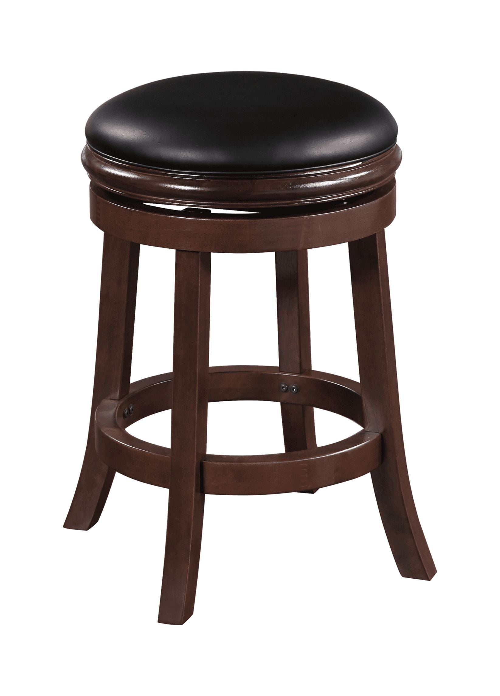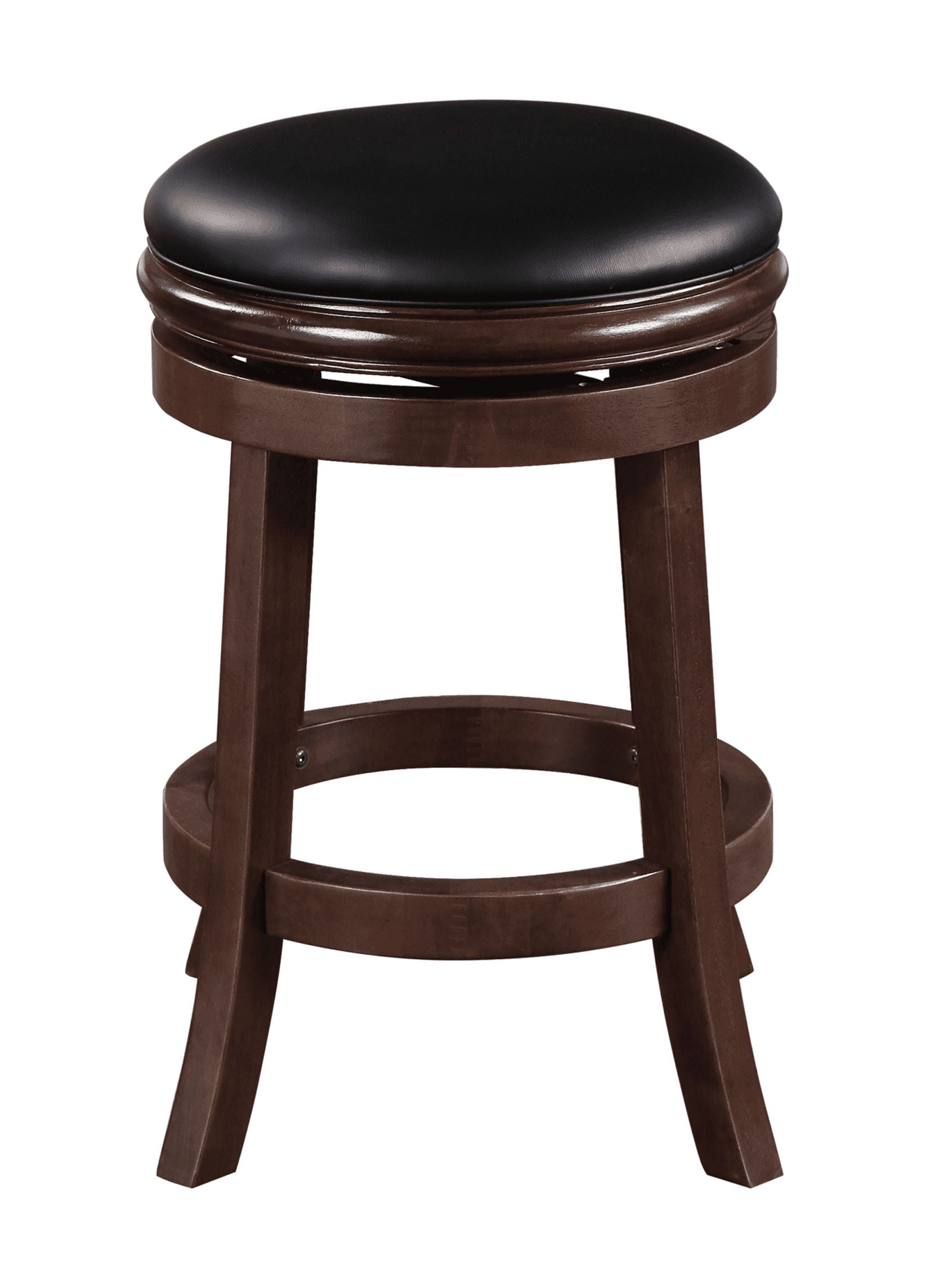 Constructed with rubberwood Black faux leather upholstery with single welt cord trim The wonderful full 360-degree swivel function allows for maximum mobility Tapered legs and round footrest offers extra stability and durability All tools included for quick and easy assembly Seat height available in counter or bar height options Multiple finish options available