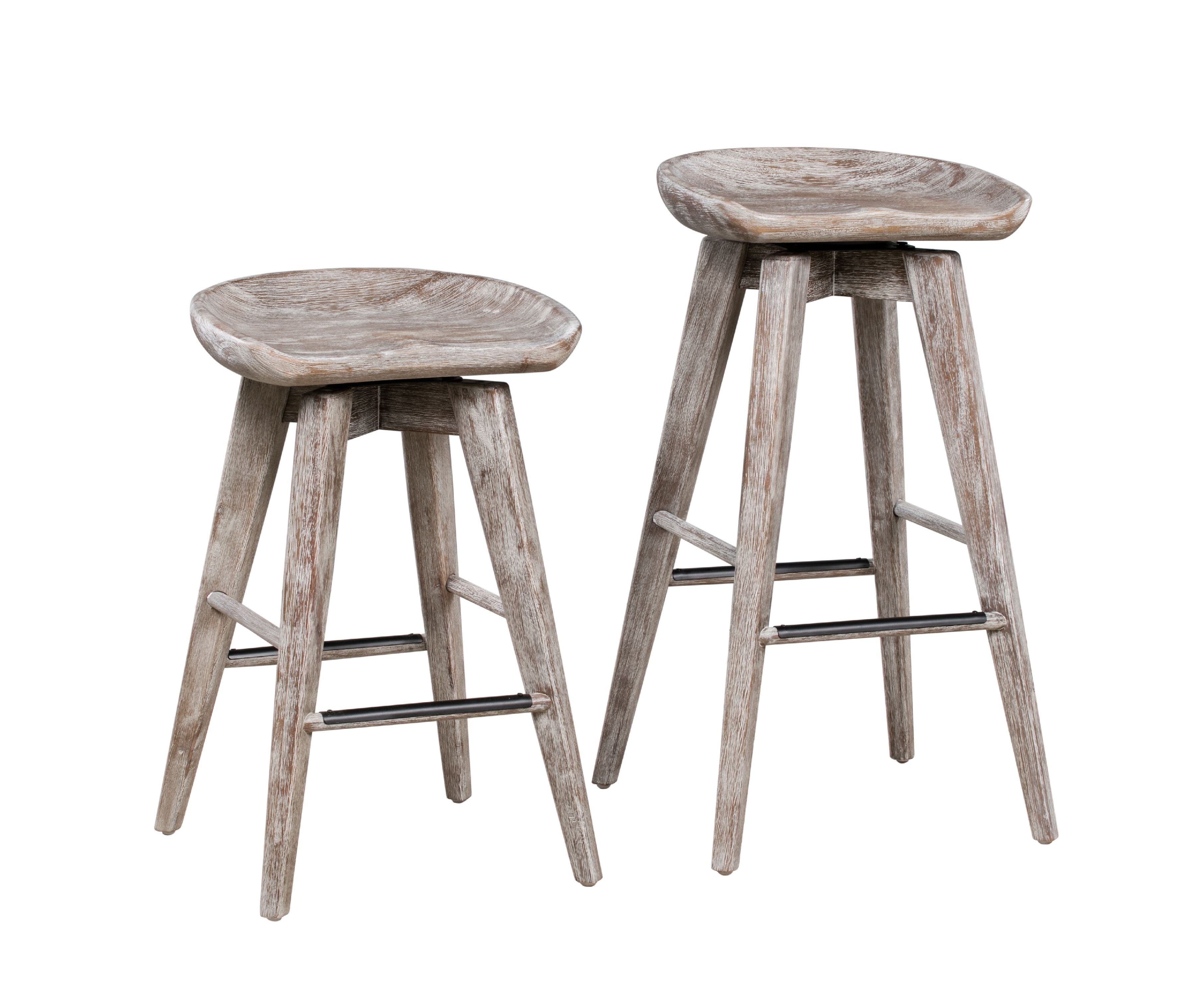 Boraam Bali 24″ Backless Swivel Wood Counter Stool, Barnwood Wire-Brush Finish