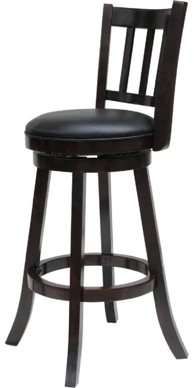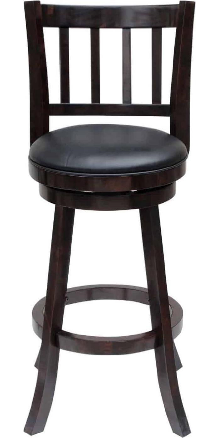 The Bloomington Bar Stools brings home absolute comfort in a sleek, traditional package. The bar stool’s rich wood finish and black faux leather offer classic good looks and durability. Meanwhile, the high-density foam padding, full-ring footrest, and 360-degree swivel also promise the Bloomington is a comfortable, inviting seat at a home bar or in a den or game room. The Bloomington Barstools is available in a set of 2 or a s a single.