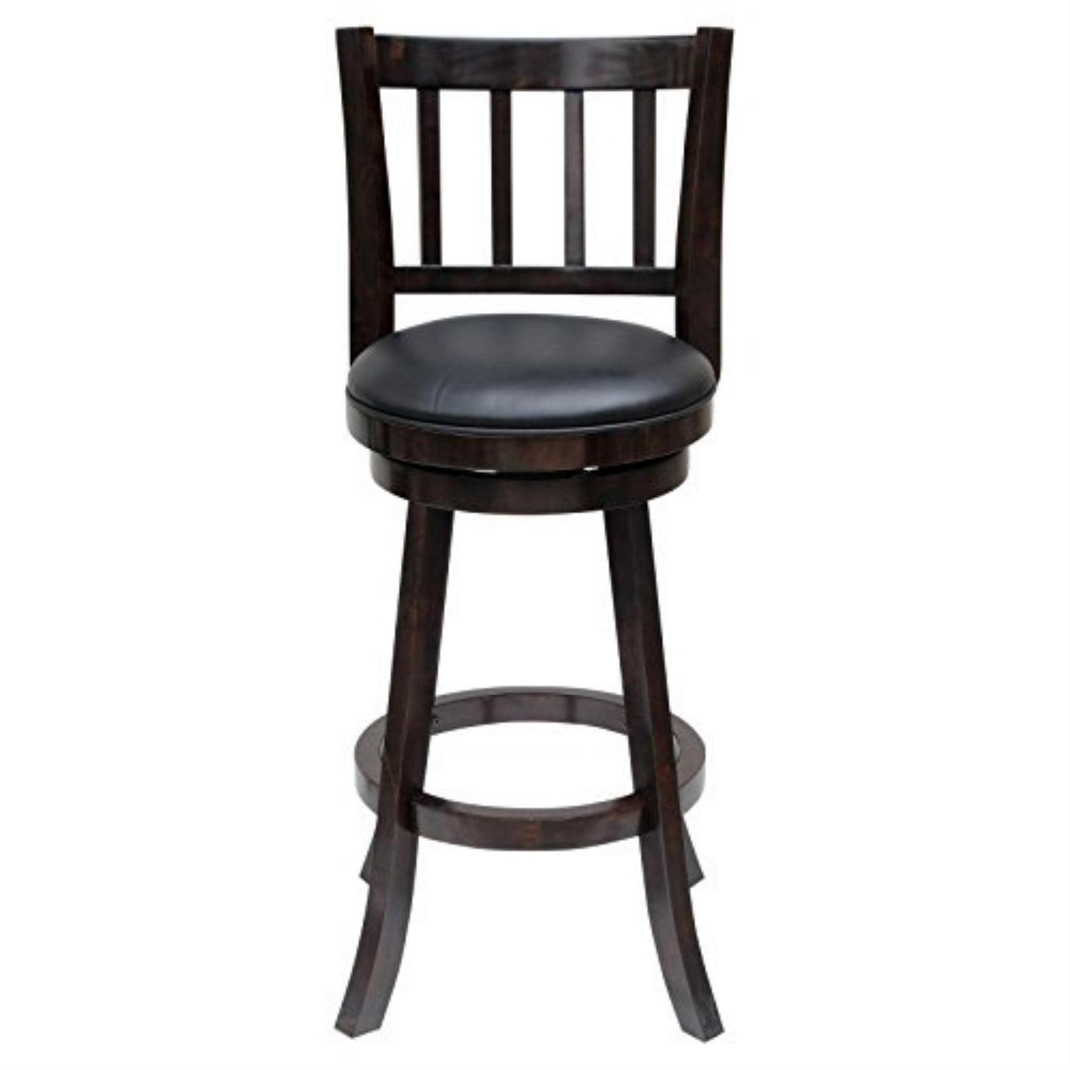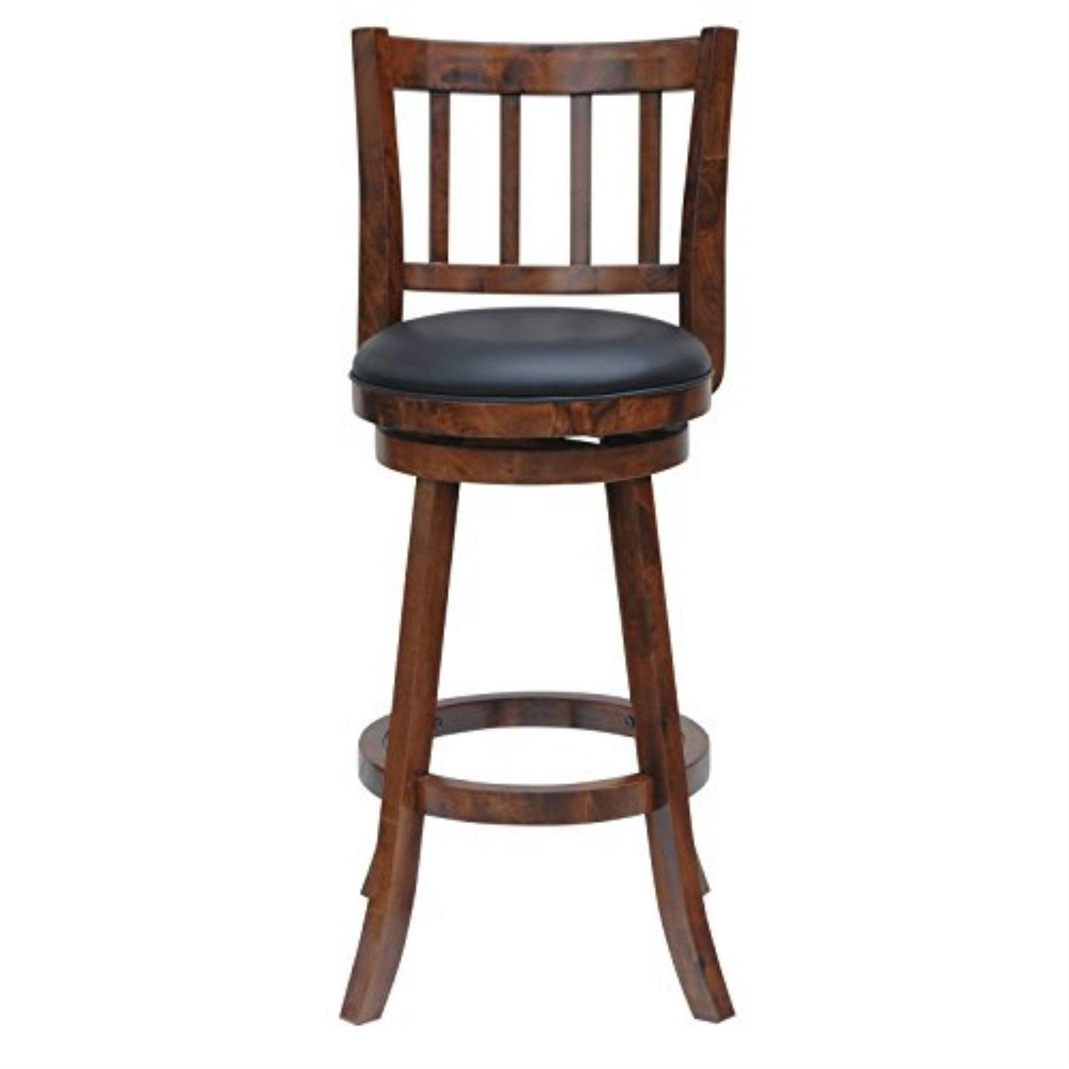 The Bloomington Swivel Stool is the perfect design chameleon, bringing versatile looks to your home. The rich wood finish and black faux leather offer sleek, traditional features perfect for a kitchen setting. Meanwhile, the high-density foam padding, full-ring footrest, and 360-degree swivel also promise the Bloomington is a comfortable, inviting seat at a home bar or in a den or game room. Available in counter and bar height options, and in three different finishes.