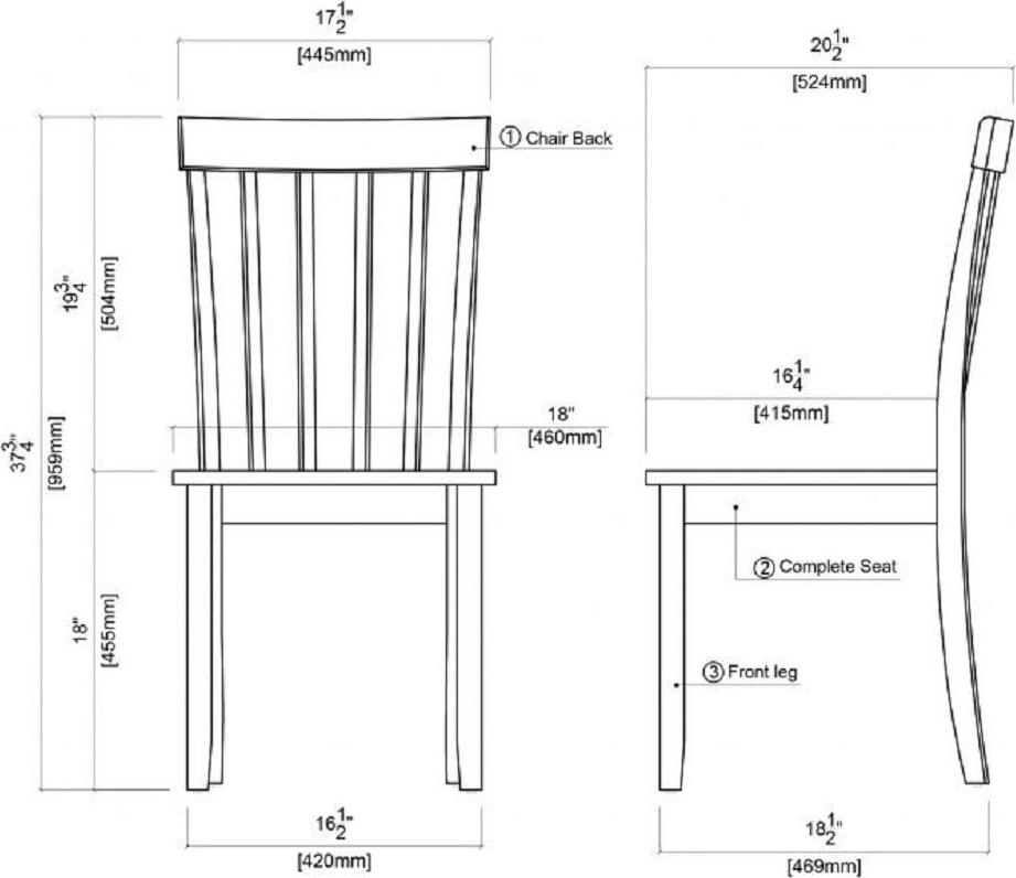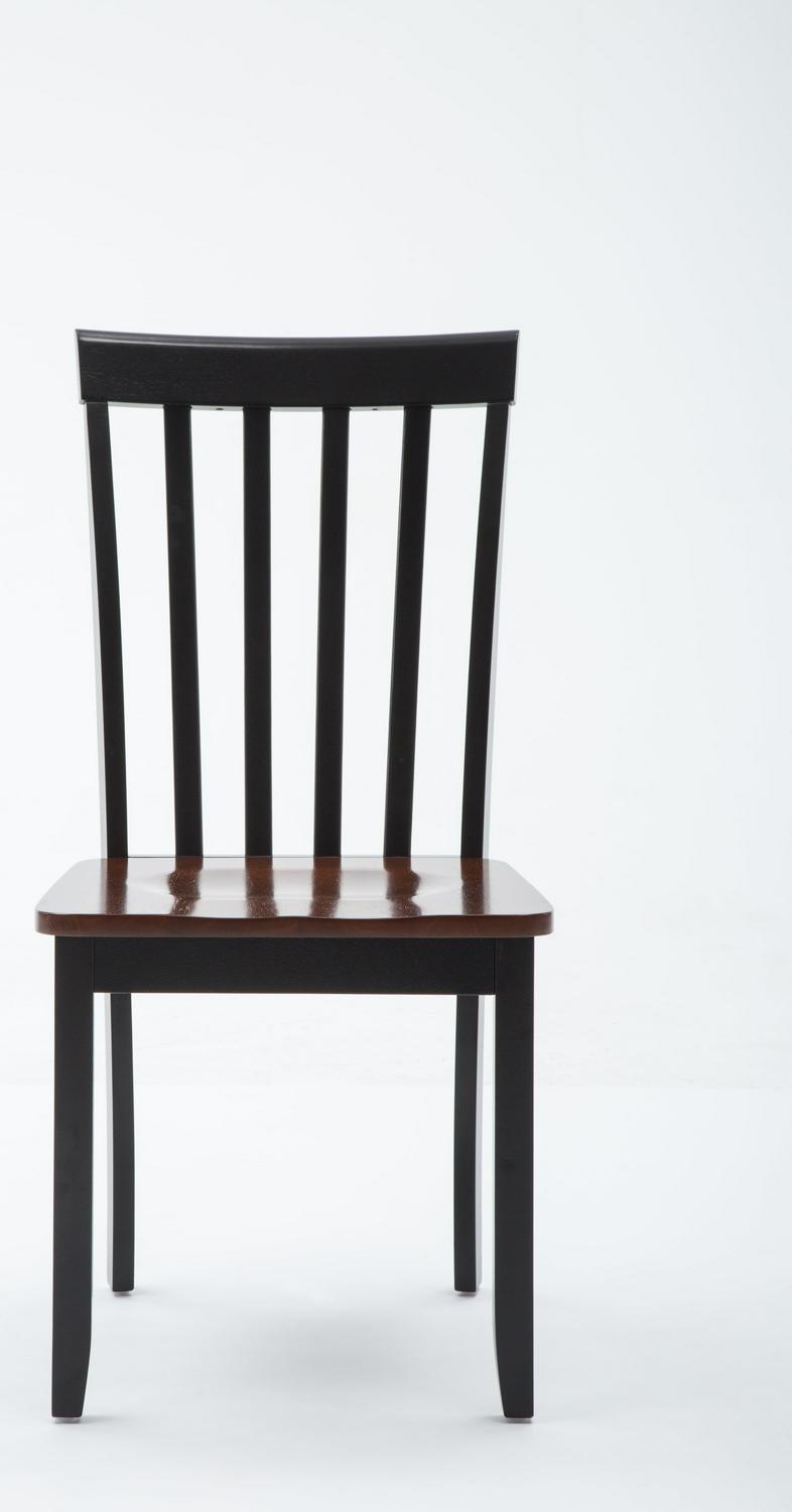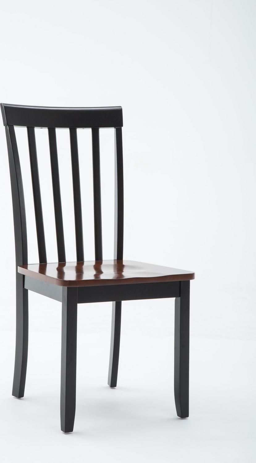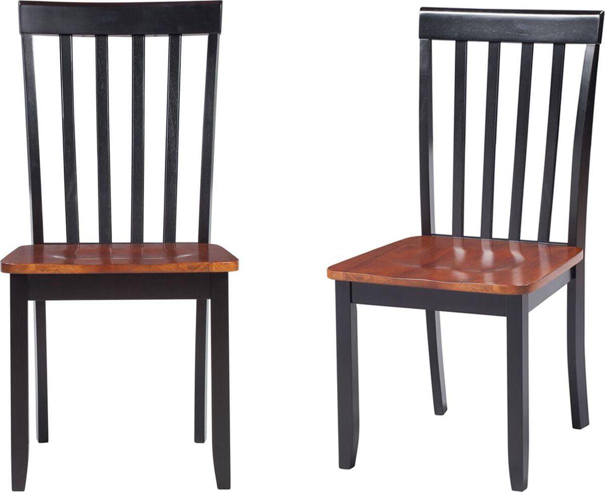 Your dining room can t go wrong with the Bloomington Dining Chair. This set includes two matching farmhouse-style dining chairs. Each is constructed from rubberwood with wood veneers and engineered wood. The seat is contoured and the backrest is rounded, promising more comfort than you d expect, letting you lean back and relax. The chairs come in your choice of available two-tone color combinations: Black & Cherry or White & Honey Oak. For a Shaker-inspired dining room, pair these dining chairs with the matching Bloomington Dining Table and Bloomington Dining Bench (sold separately). Please note that product weight is for a single chair.