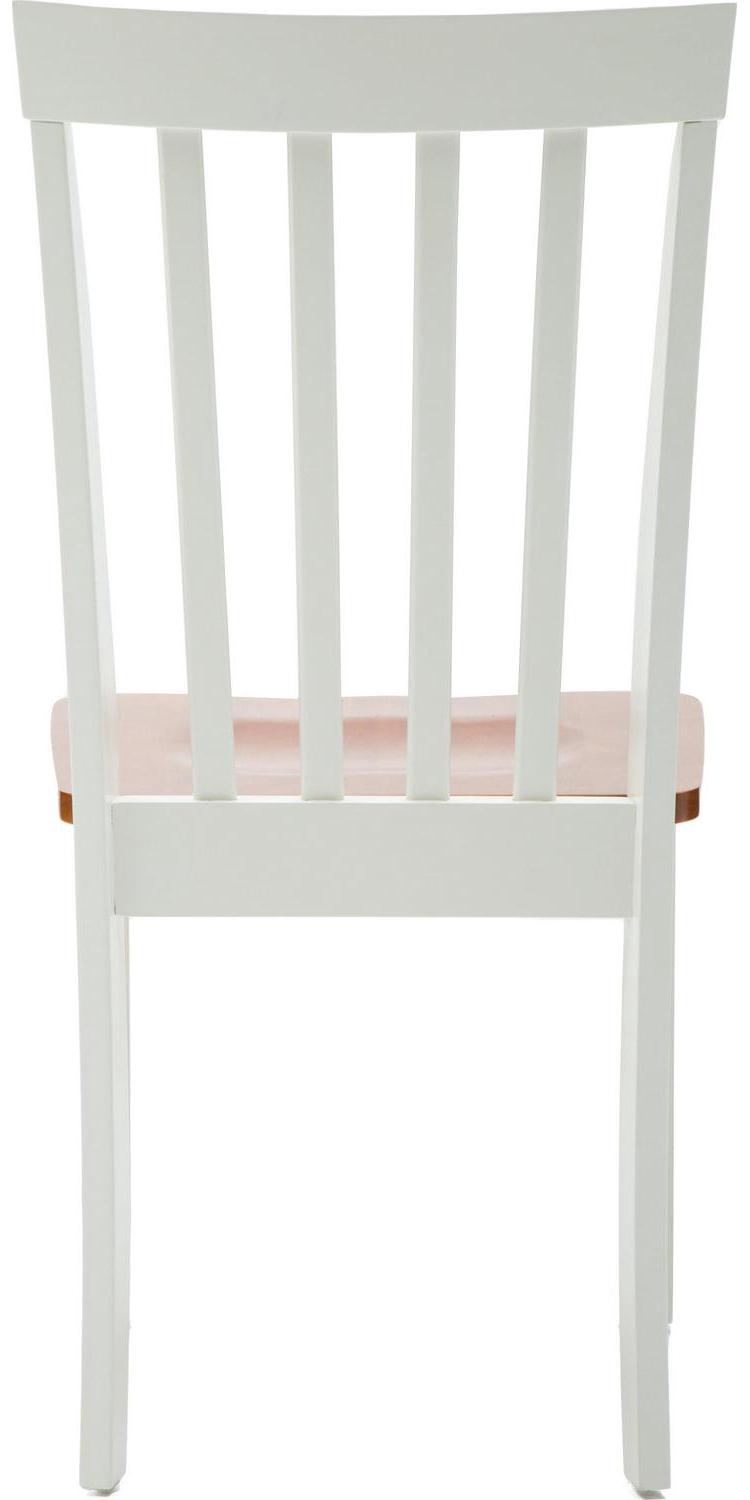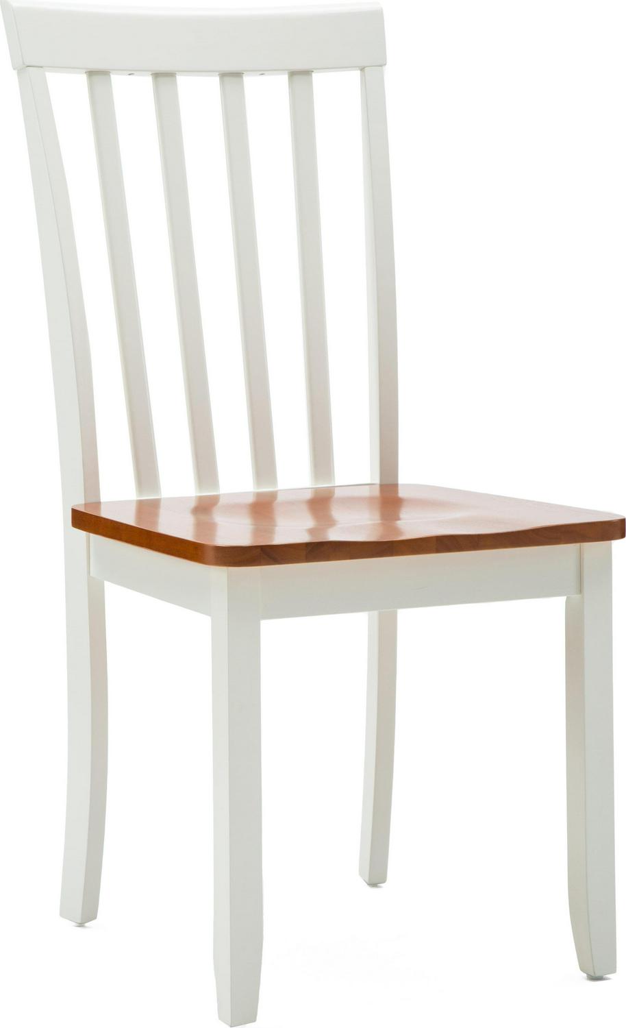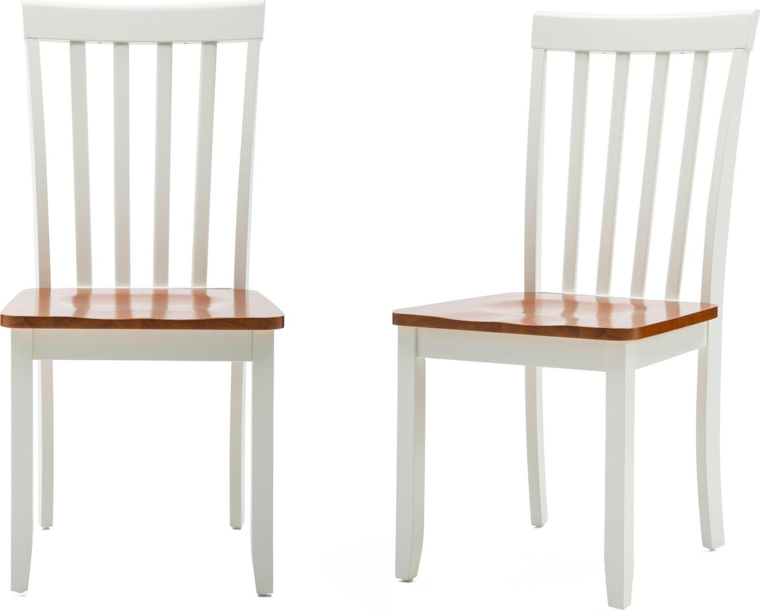 Your dining room can t go wrong with the Bloomington Dining Chair. This set includes two matching farmhouse-style dining chairs. Each is constructed from rubberwood with wood veneers and engineered wood. The seat is contoured and the backrest is rounded, promising more comfort than you d expect, letting you lean back and relax. The chairs come in your choice of available two-tone color combinations: Black & Cherry or White & Honey Oak. For a Shaker-inspired dining room, pair these dining chairs with the matching Bloomington Dining Table and Bloomington Dining Bench (sold separately). Please note that product weight is for a single chair.