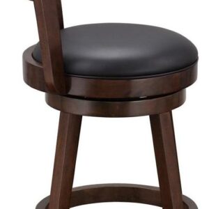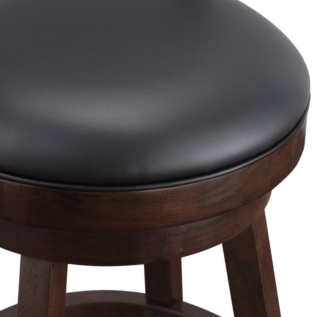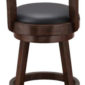 Constructed with plywood, rubber, and faux leather; 2 available finishes; Footrest for comfortable seating; 360-degree swivel; High-density foam cushioning; Circle cutouts in backrest; Counter (24″) and bar (29″) seat height options available