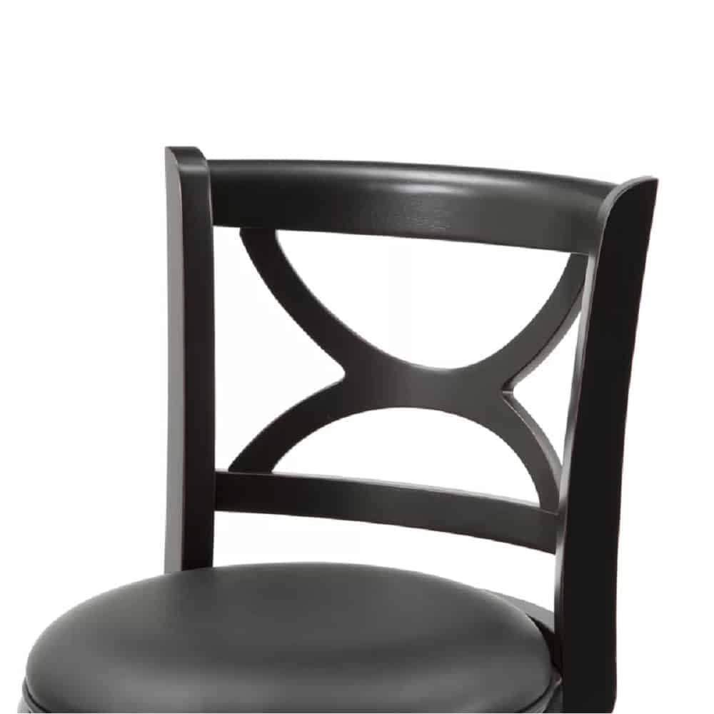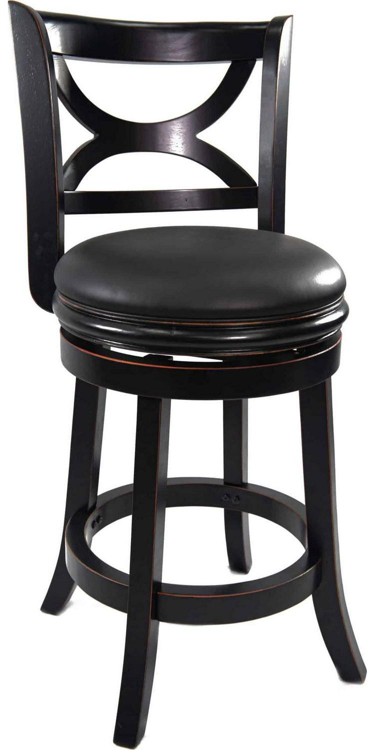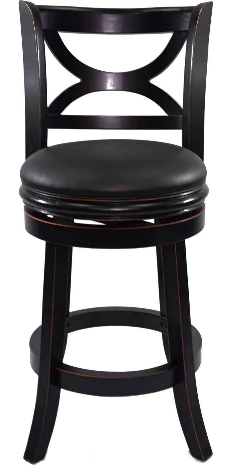 Safety, durability, and design are all wrapped up in one package with the Boraam Florence Swivel Counter or Bar Stool. No matter how long your meal lasts, the stool s round swivel seat, footrest, and contoured back ensure you ll be eating in comfort. A 360-degree ball-bearing swivel plate promises durability. Thanks to the solid hardwood construction and stability stretchers on the stool s base (which also double as a footrest), you ll get long-lasting use out of this piece. Finally, faux leather upholstery covers fire-retardant high-density foam in the seat and the back. The stool s contemporary good looks are available in your choice of three different finish options, so it s sure to fit into any decorating scheme. Perfect for your kitchen or dining room.