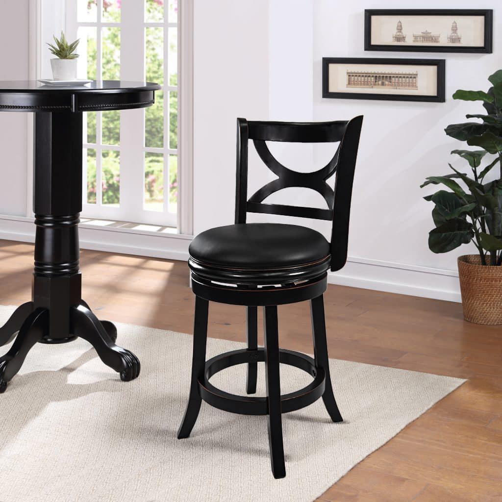 Boraam Florence Counter Height High Back Kitchen Swivel Wood Counter Stool, Black Sandthru Finish