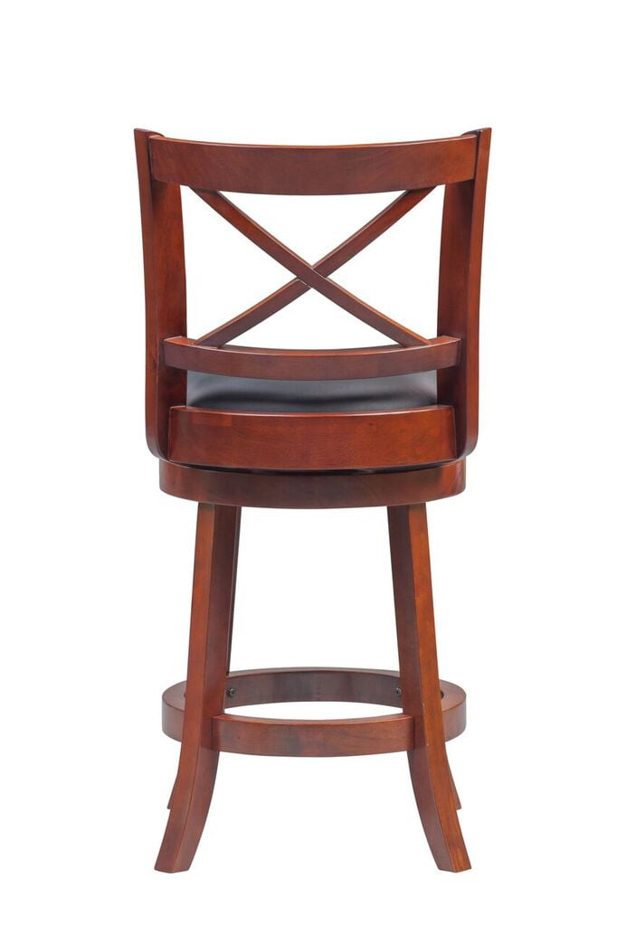 Whether you’re socializing with friends or simply enjoying a cold one after a long day, the Georgia Swivel Stool is here to keep you comfortable through it all. This transitional swivel stool is perfect for any space, including kitchens, game rooms, dens, and home bars. High-density foam cushioning in the seat is coupled with a built-in footrest and (best of all) the 360-degree swivel. The swivel is supported by a ball-bearing steel swivel plate. Faux leather upholstery has the look of the real deal but the convenience of leatherette, all at an affordable price point. Finally, this crossback stool is performance tested by leading testing facilities for long-lasting durability. Pick the perfect stool today: the Georgia is available in bar and counter height options, plus a range of finishes.
