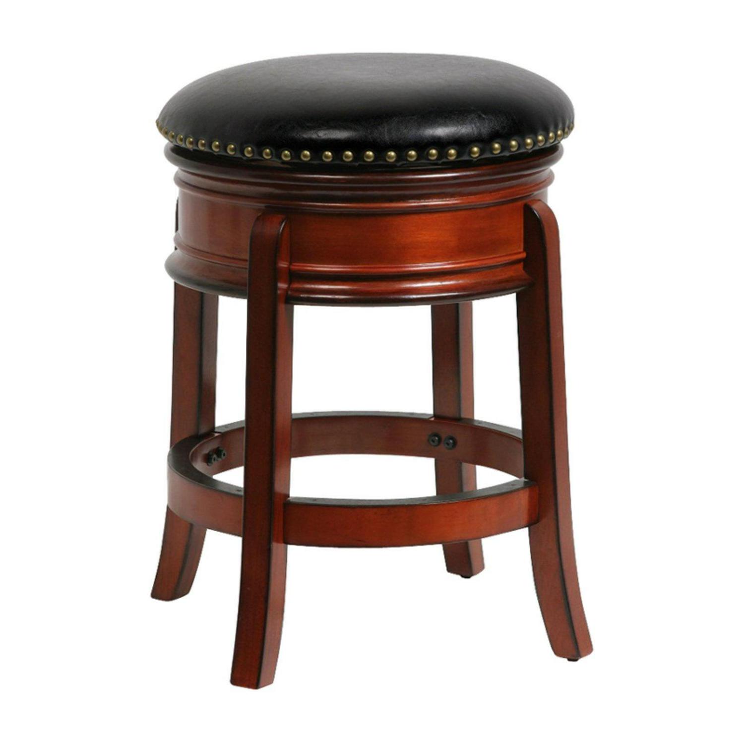 With the help of the Boraam 24 in. Hamilton Leather Swivel Backless Counter Stool, you can renew your seating space with style. The Hamilton is composed of solid hardwood and engineered to perfection. The decorative nail-head trim is made from authentic brass material, and each leg has a strategic flare design that provides durability and balance. The high-density foam encased with bonded leather on the seat provides maximum comfort. Additionally, the steel swivel plate features full ball-bearing designs for an effortless 360-degree turn. The Hamilton is available in your choice of beautiful color finishes. Dimensions: 18W x 18D x 24H inches.