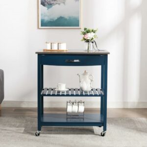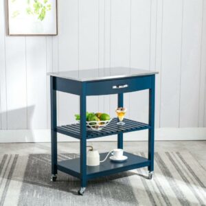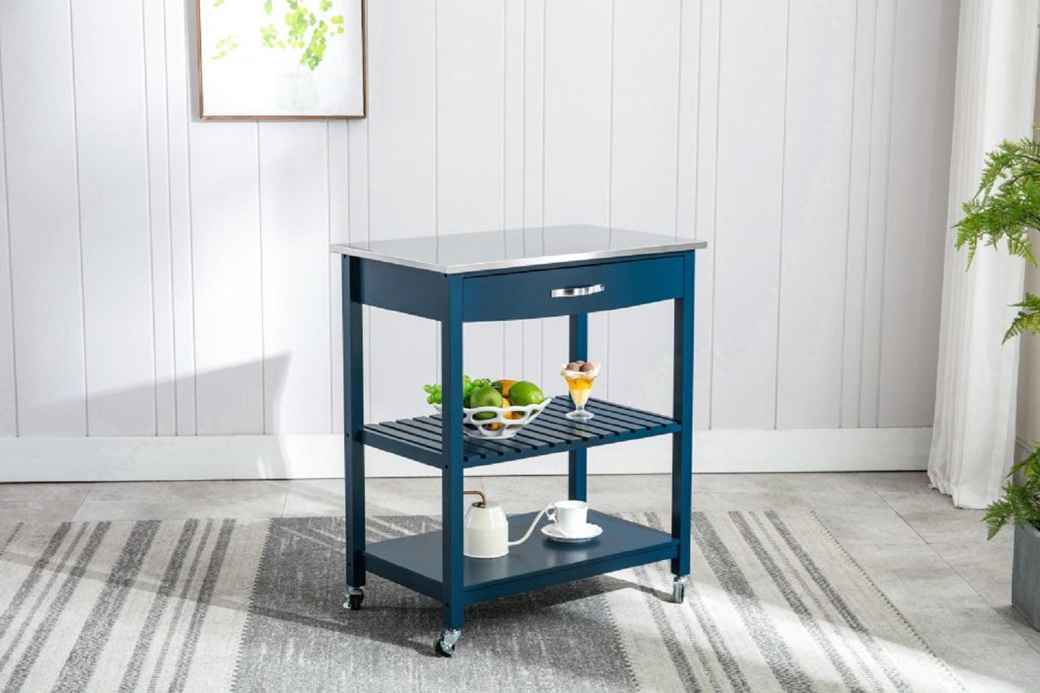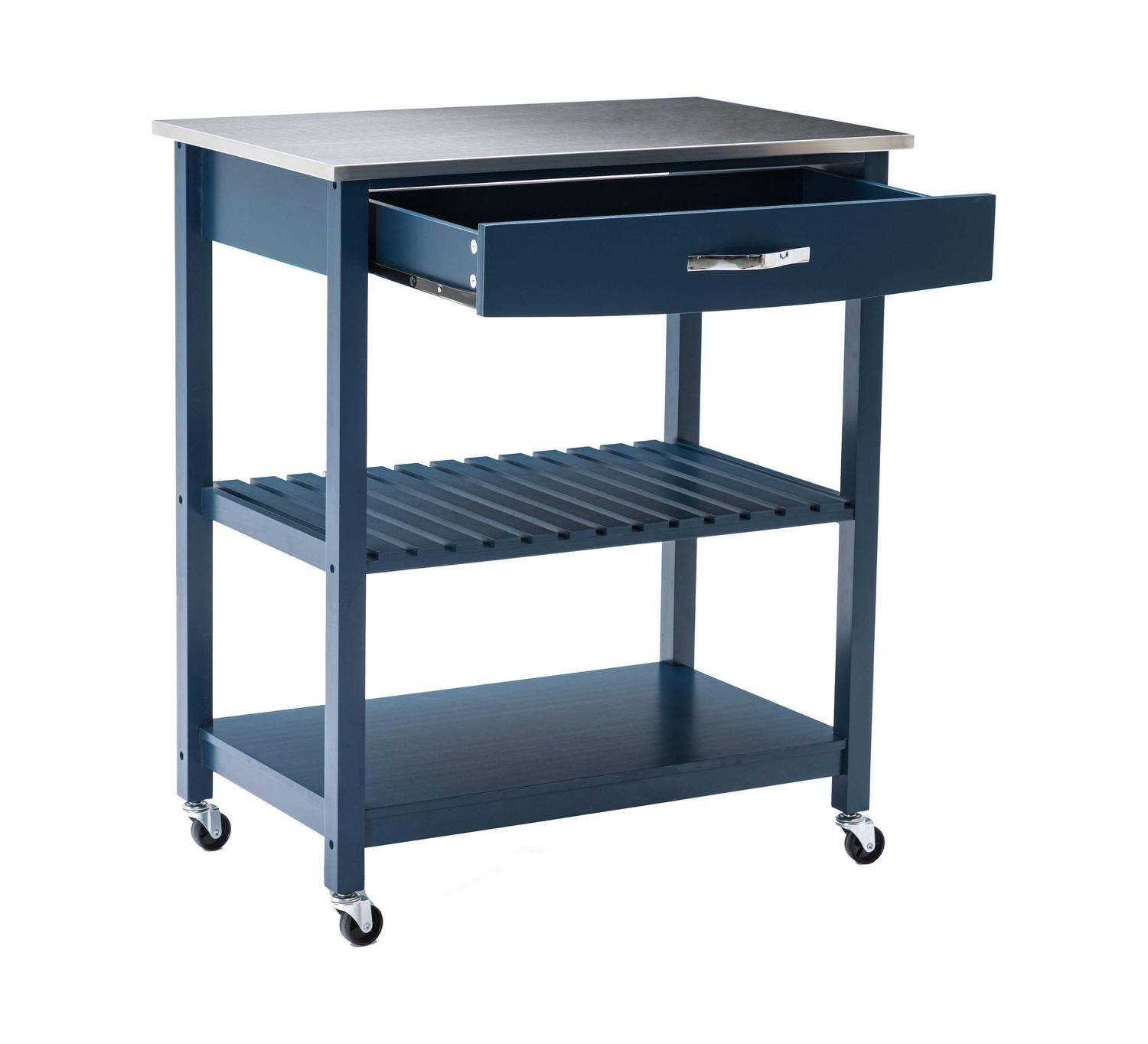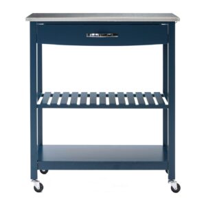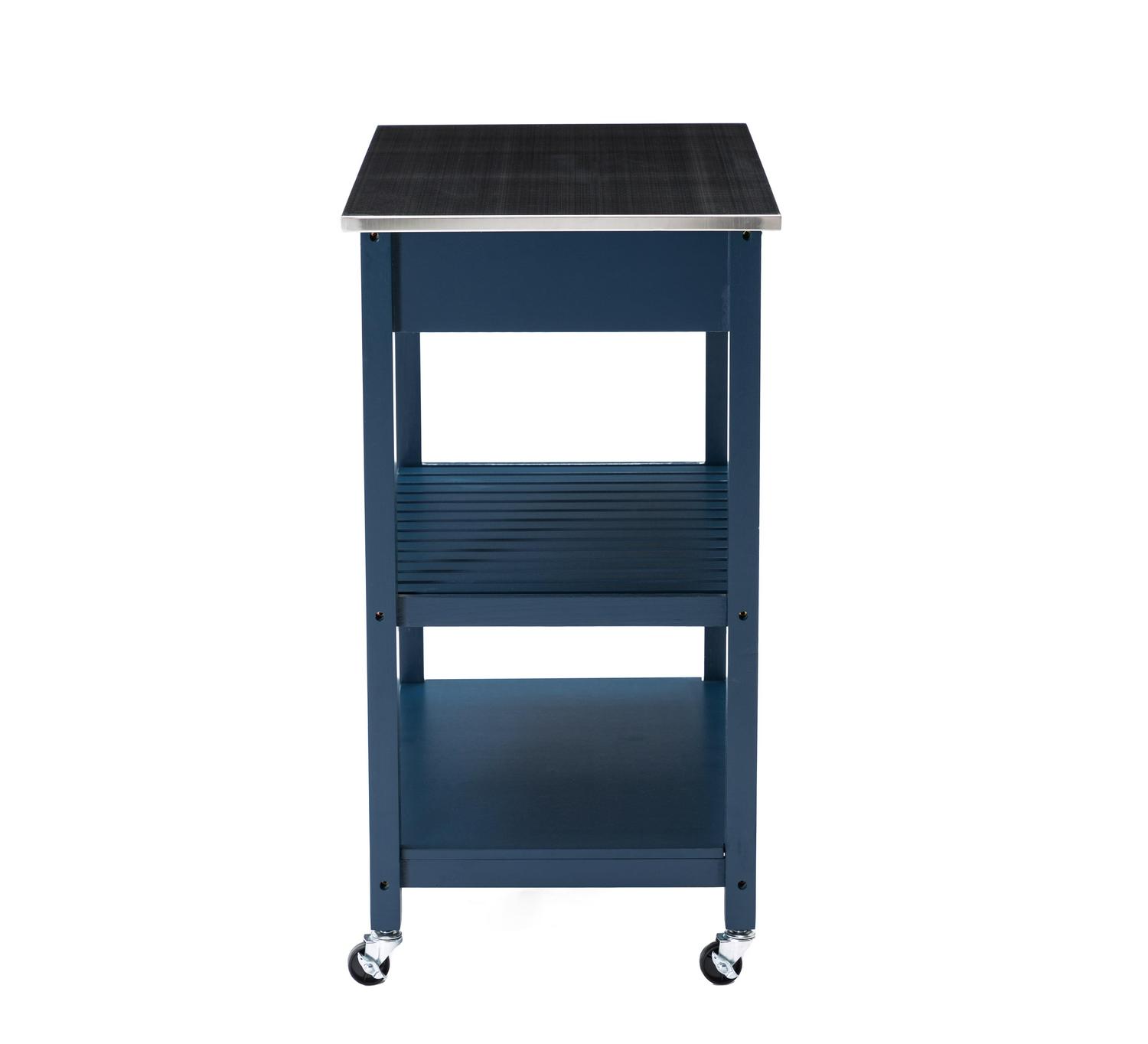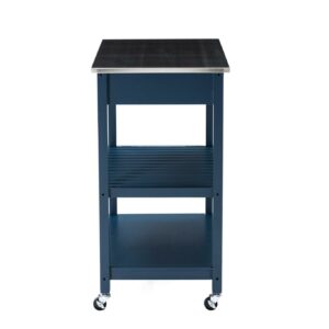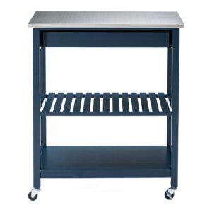 Boraam Holland Wood Kitchen Cart with Stainless Steel Top, Navy Blue Finish