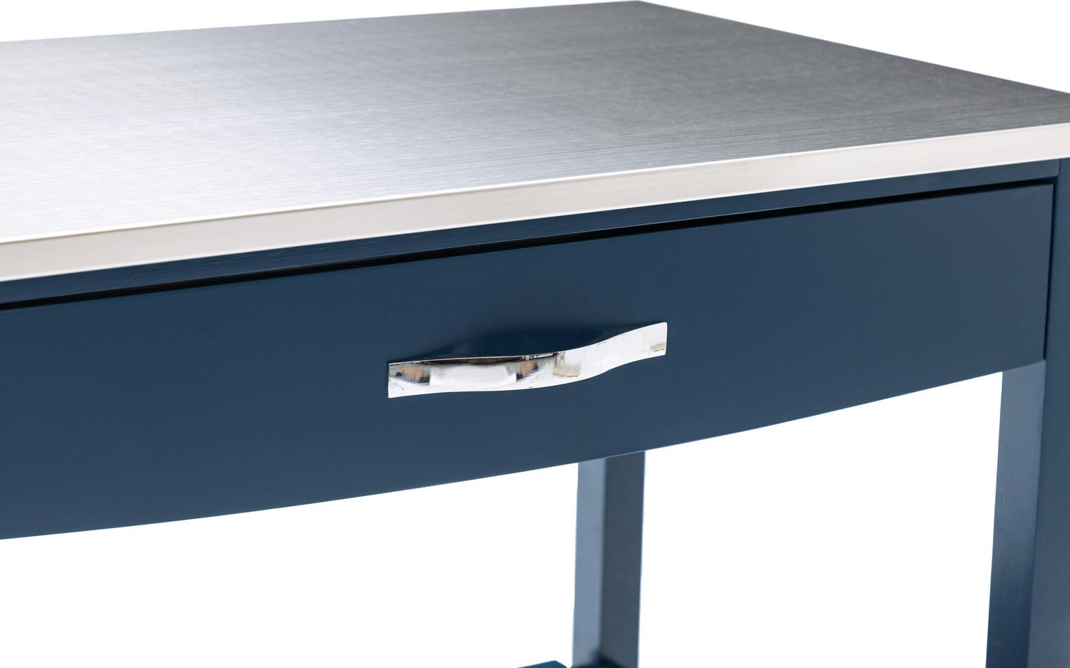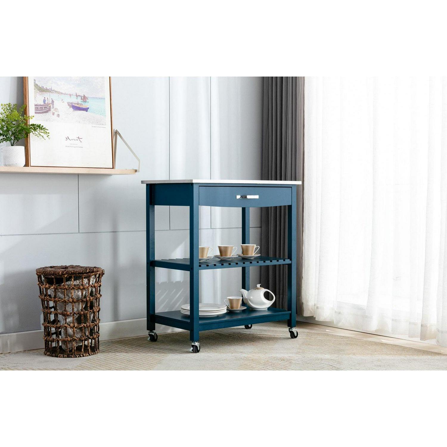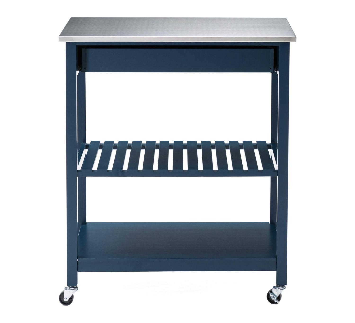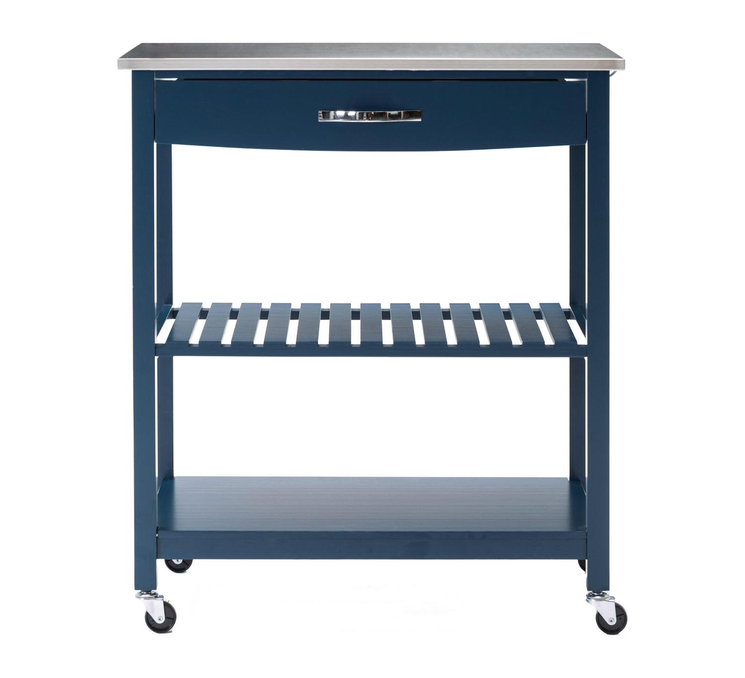 Boraam Holland Wood Kitchen Cart with Stainless Steel Top, Navy Blue Finish