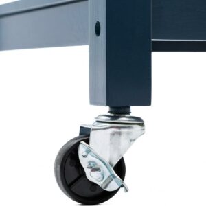 – Constructed with pine wood, MDF, and stainless steel; 4 locking casters; 2 shelves and 1 drawer; Available in 3 finishes; 36″ height; Can hold up to 225 pounds; All tools and instructions included for quick and easy assembly