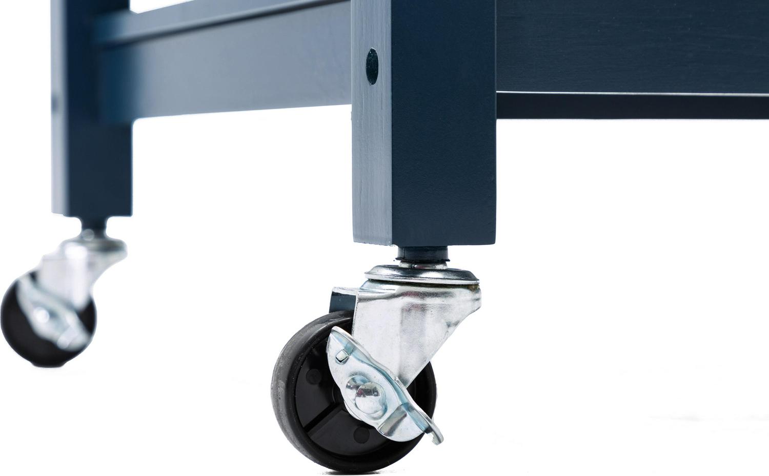 If you need a little extra storage and prep space for your kitchen, look no further than the Holland Kitchen Cart With Stainless Steel Top. This rolling kitchen cart also makes a great bar cart! Store dishes, glassware, cutlery, or your favorite spirits on the lower shelves. A slender drawer conveniently holds napkins, utensils, corkscrews, and other kitchen must-haves. Use the rolling caster wheels to roll this cart from the kitchen to the living room whenever guests are over, then wheel it back when it’s time to wash the dishes. It’s built from pine wood and medium density fiberboard with a stainless steel work surface.