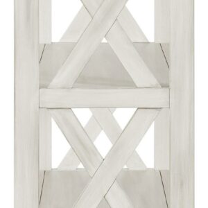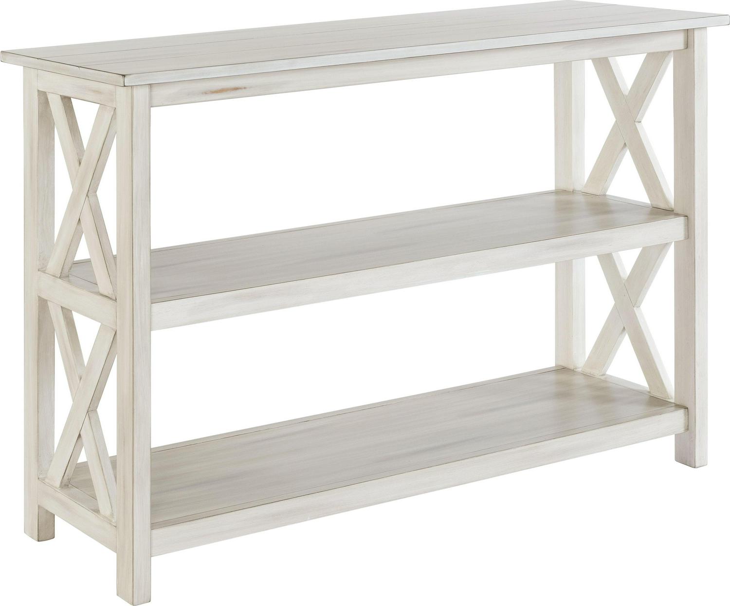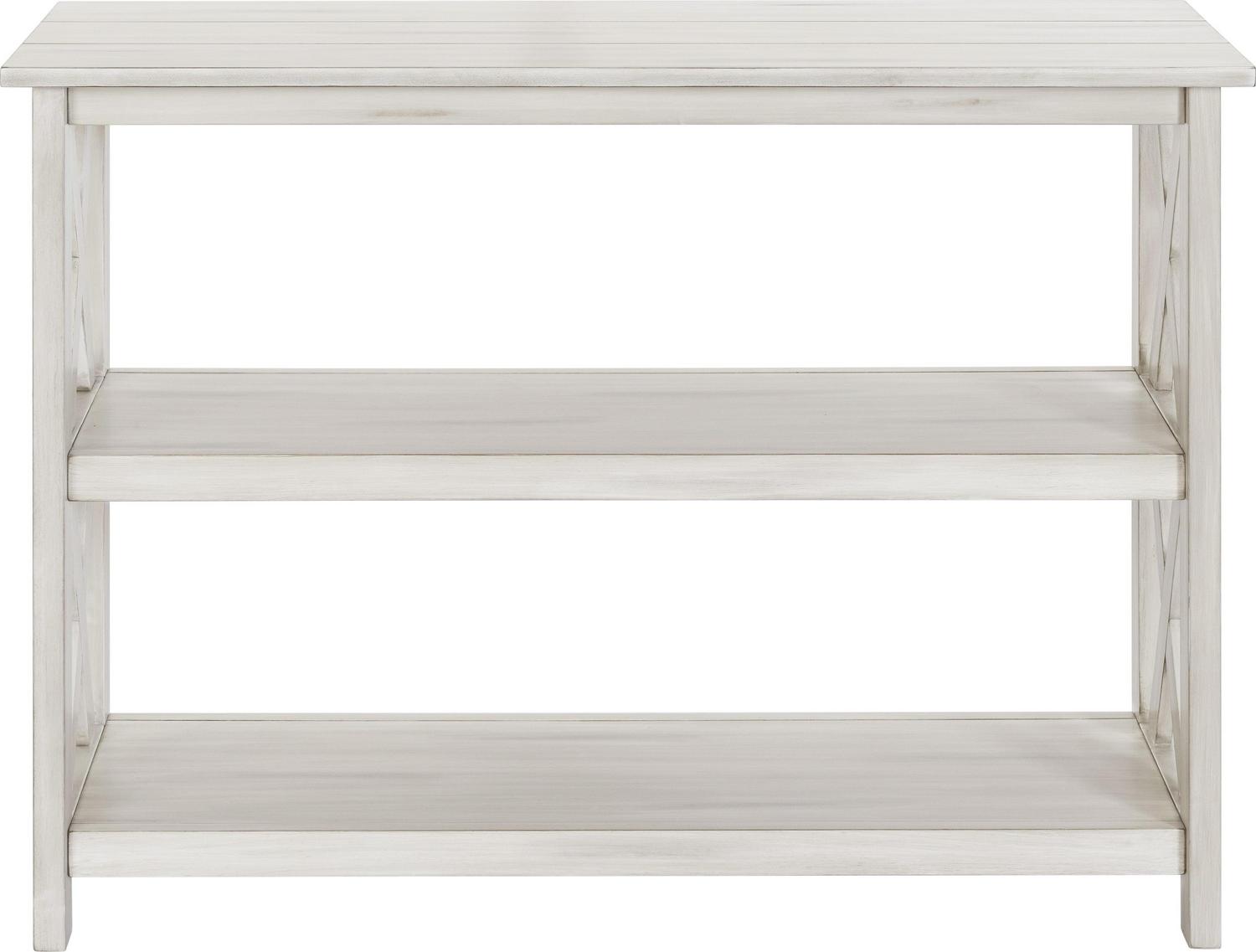 The Jamestown Entryway Table signals comfort and coziness to every guest who walks through your front door. Plank-style detailing on the tabletop is coupled with a rustic Antique White finish that adds a homey feel. Stack a few woven baskets on the two lower shelves to bring order to the piles of shoes, scarves, and hats that usually clutter up the entryway. Display an array of decorative items along the long tabletop, including vases, paperweights, succulents, and more. Bring the farmhouse design aesthetic to the rest of your home with the other Jamestown living room and dining room furniture from Boraam.