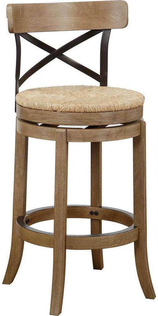 Boraam Myrtle 29in. X-Back Swivel Wood Bar Stool, Wheat Wire-Brush Finish
