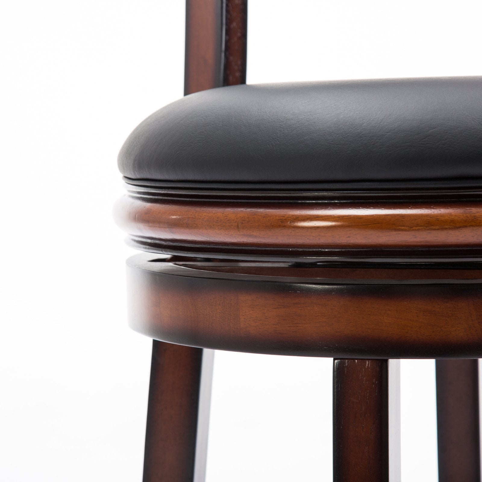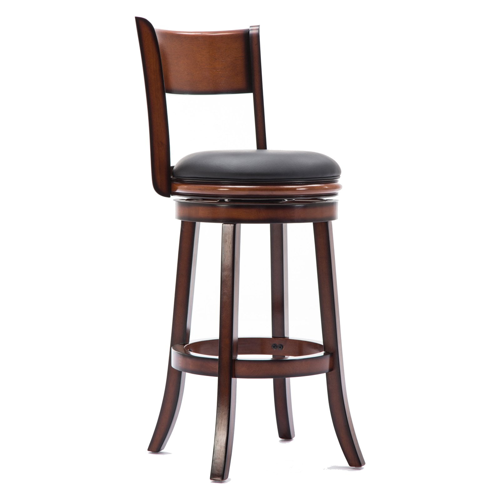 Palmetto Swivel Barstool 29″ Durable ball bearing for full 360 degree swivel Flared legs and footrest for comfort and stability 29″ barstool Solid hardwood construction Black faux leather seat over high-density foam Assembly required Palmetto Swivel Barstool 29″ Durable ball bearing for full 360 degree swivel Flared legs and footrest for comfort and stability 29″ barstool Solid hardwood construction Black faux leather seat over high-density foam Assembly required Palmetto Swivel Barstool 29″ Durable ball bearing for full 360 degree swivel Flared legs and footrest for comfort and stability 29″ barstool Solid hardwood construction Black faux leather seat over high-density foam Assembly required