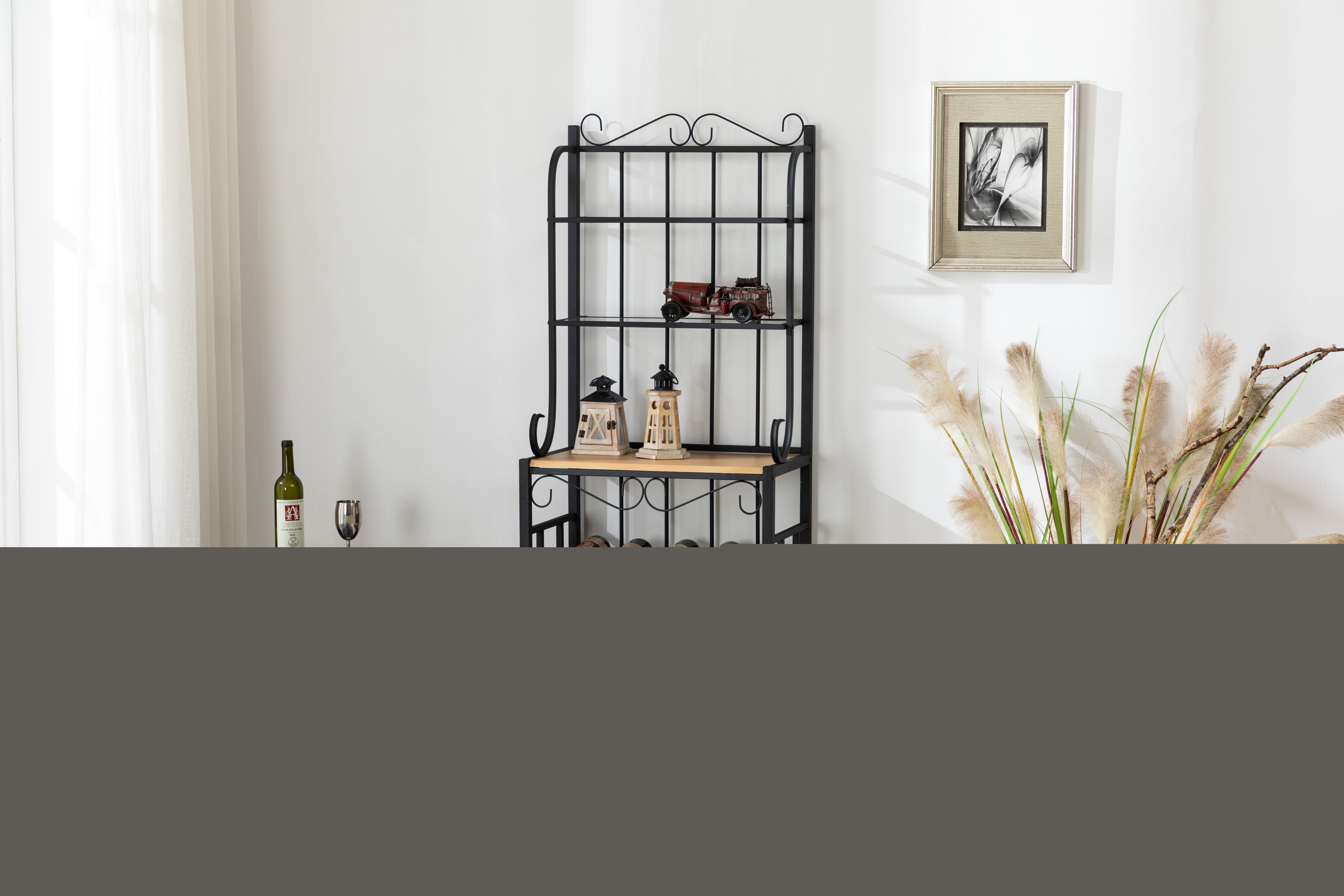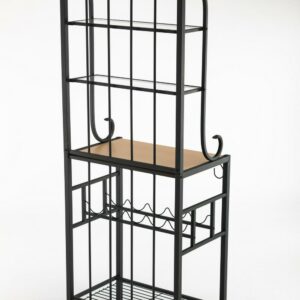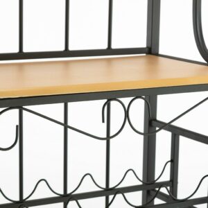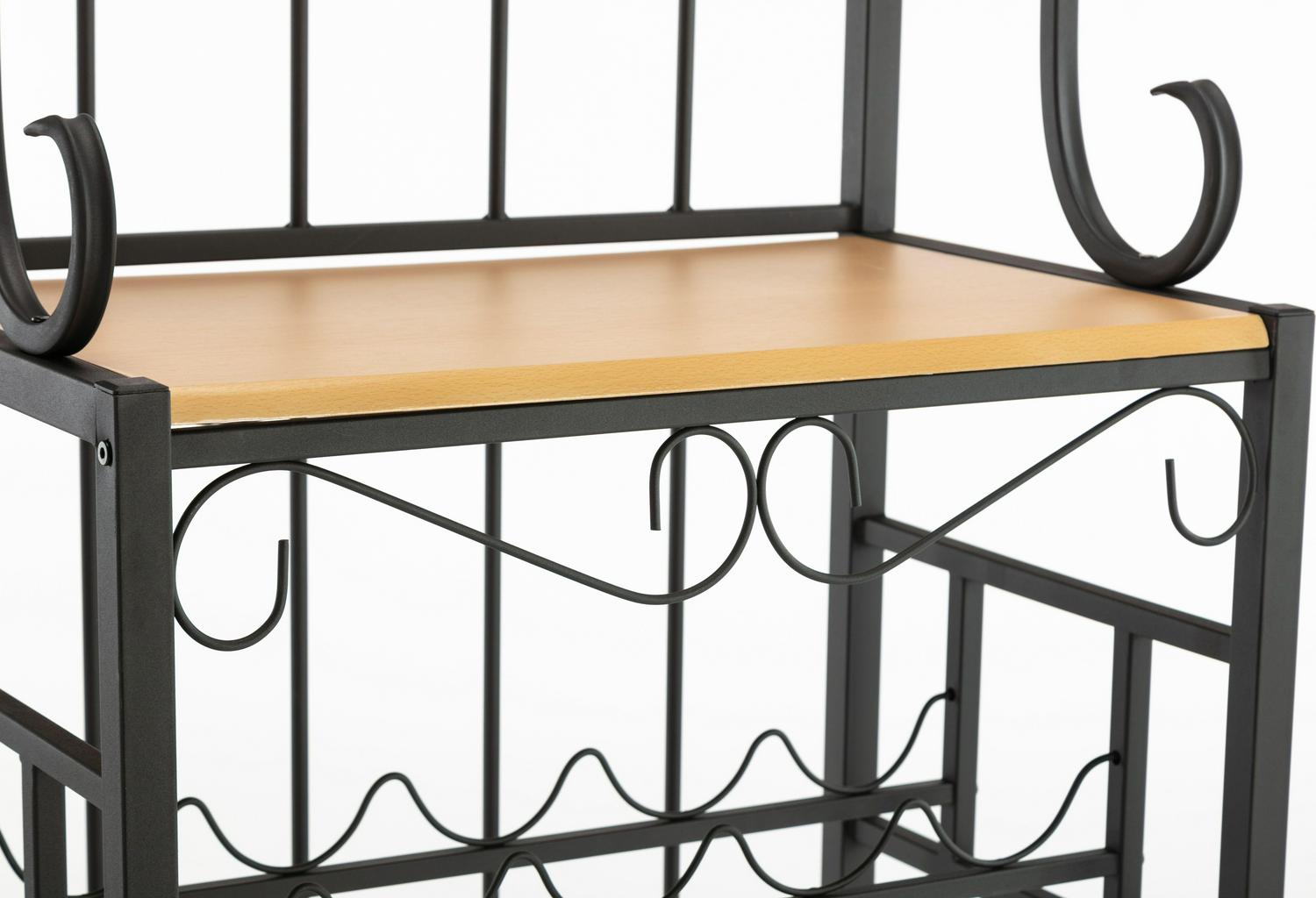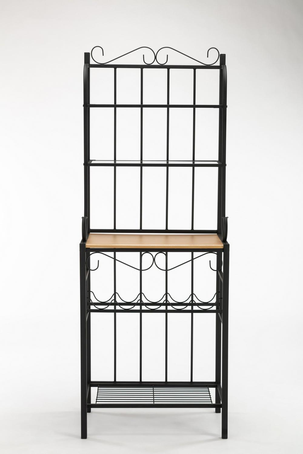 Add a beautiful solution to your storage, countertop, and display needs with the Boraam Praha 4-Tier Metal Baker s Rack. Built from sturdy steel with a black powder-coated finish, this durable rack fits into any design aesthetic. Its four shelves offer ample storage by storing kitchen implements, such as cookware, glassware, your precious china, or decorative accents. The built-in 5-bottle wine rack makes it easy for you to create your own entertainment area for parties or everyday living. Get the best of design and functionality with the Praha Baker s Rack.