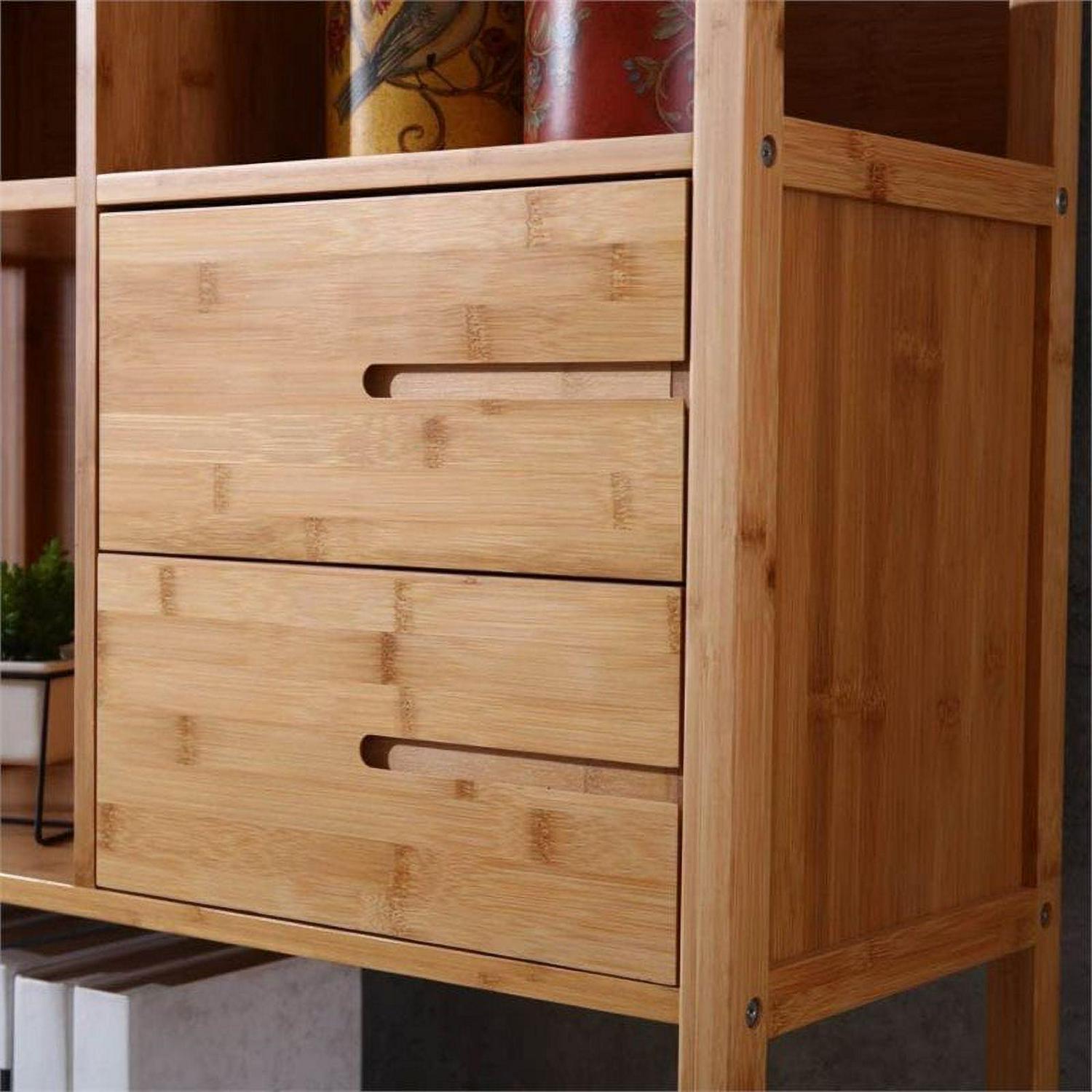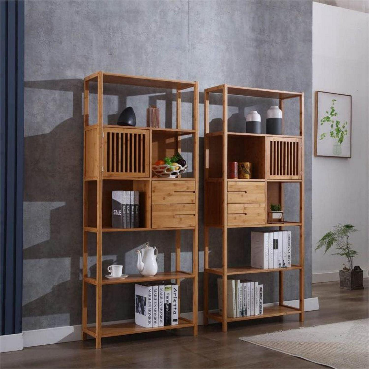 If you re a lover of the new and the unique, then bring the Selma Bamboo Bookcase into your living room or home office. Plentiful storage and display options allow you to showcase your favorite decorative knickknacks and books. This bookcase has three long shelves, two open display cubbies, and two drawers. It s crafted from bamboo and comes available in a rich Cappuccino finish or a Natural finish. It has a left-facing or right-facing cabinet available in both finishes. Create a modular bookshelf design by placing a left-facing and right-facing Selma Bookcase next to each other